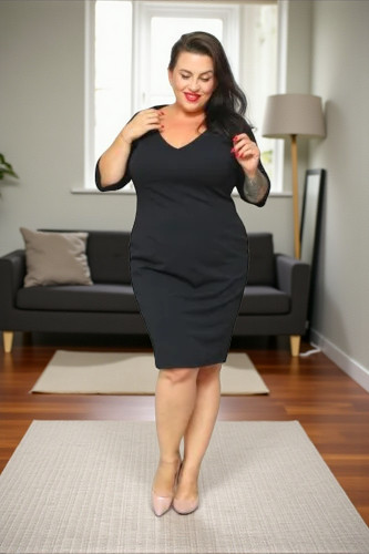 Sukienka Olga ołówkowa z regulowaną głębokością dekoltu metalowym zamkiem czarna