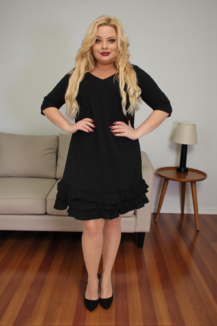 Sukienka Milagros – klasyczny fason trapezowy z romantycznymi falbankami! CZARNA