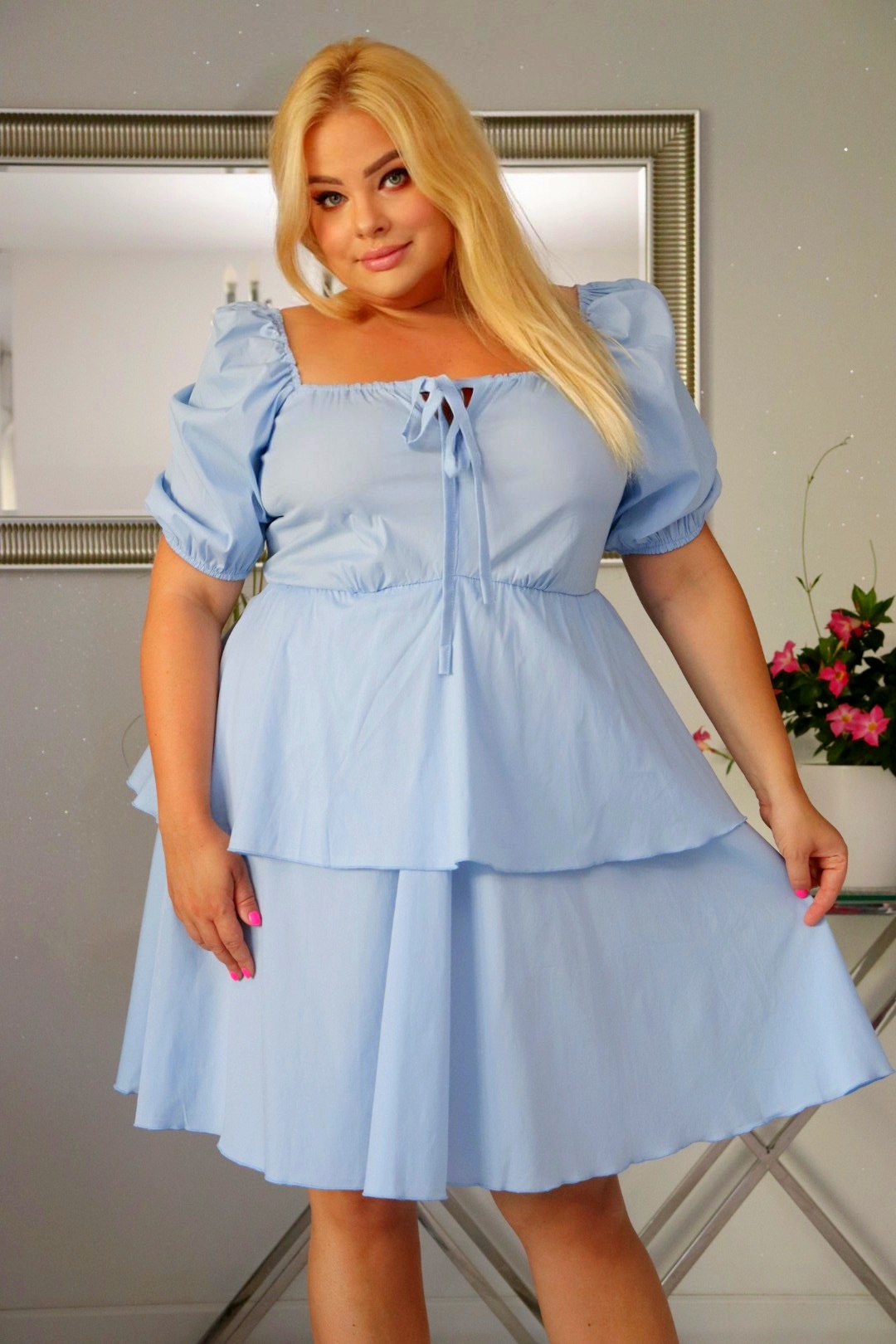 Pierwotna cena wynosiła: 249,00 zł.179,00 złAktualna cena wynosi: 179,00 zł.Sukienka Lisa miękka koronka trapezowa hiszpanka błękitna