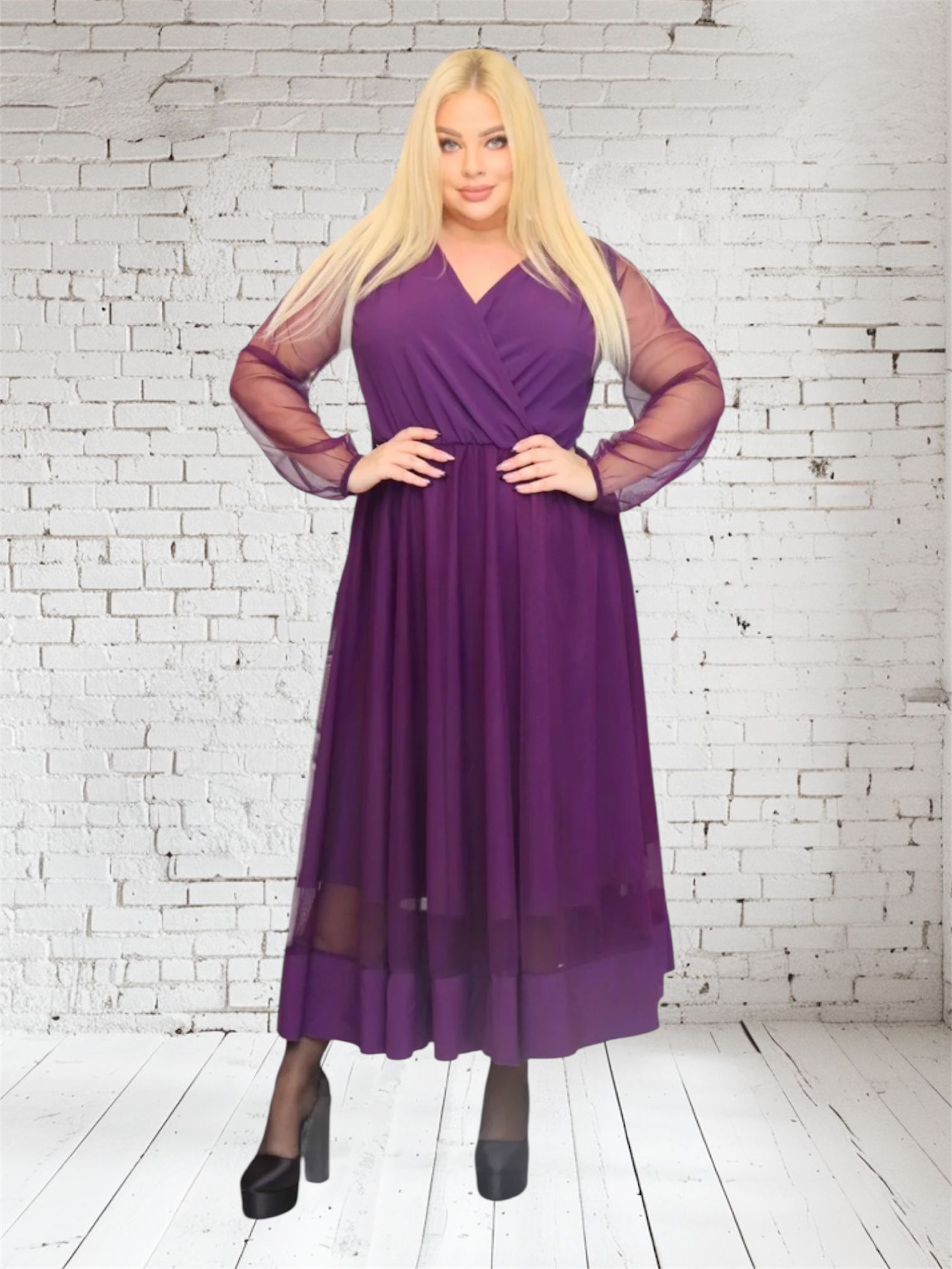 Sukienka klasyczna asymetryczna rozkloszowana kopertowy dekolt ozdoba szyfon popiel. A017. MEGA WYPRZEDAŻ!
