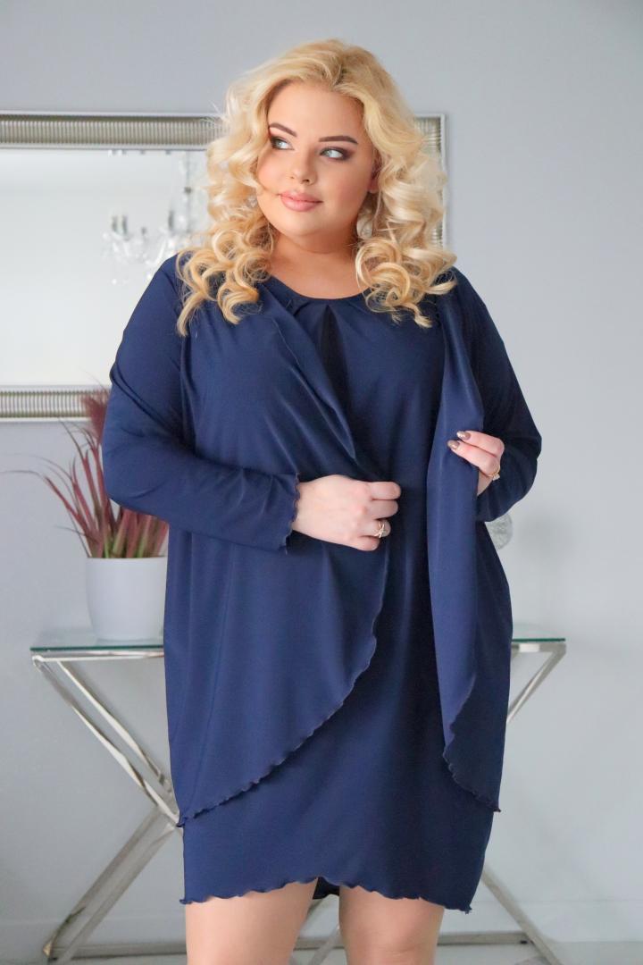 Sukienka Kama z dzianinową narzutką fala granatowa