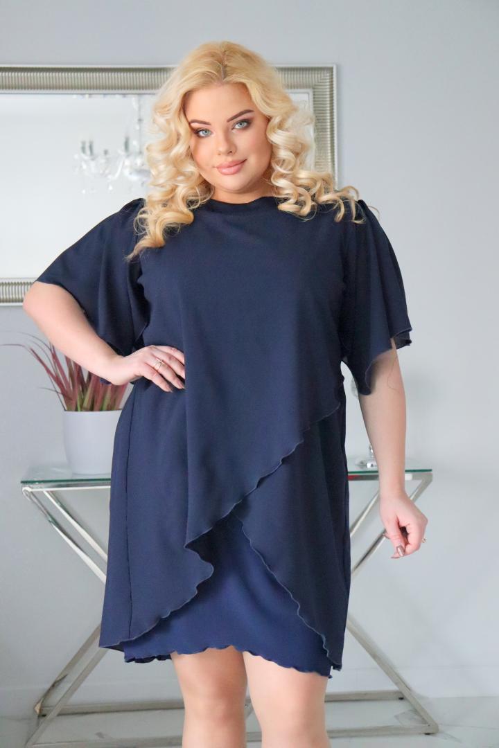 Sukienka Kama z prostokątną szyfonową narzutką granatowa