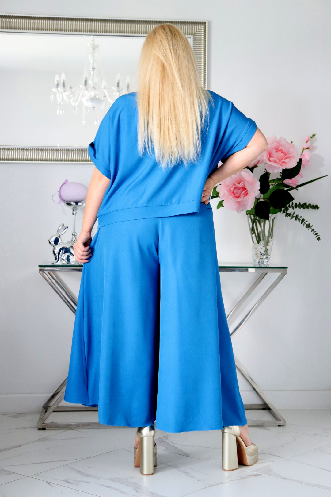 Propozycja dla kobiet, które cenią połączenie komfortu i klasy. Zestaw składający się z luźnej bluzki oraz zwiewnych spodni to idealny wybór na ciepłe dni, eleganckie spotkania i codzienne stylizacje z nutą romantyzmu.