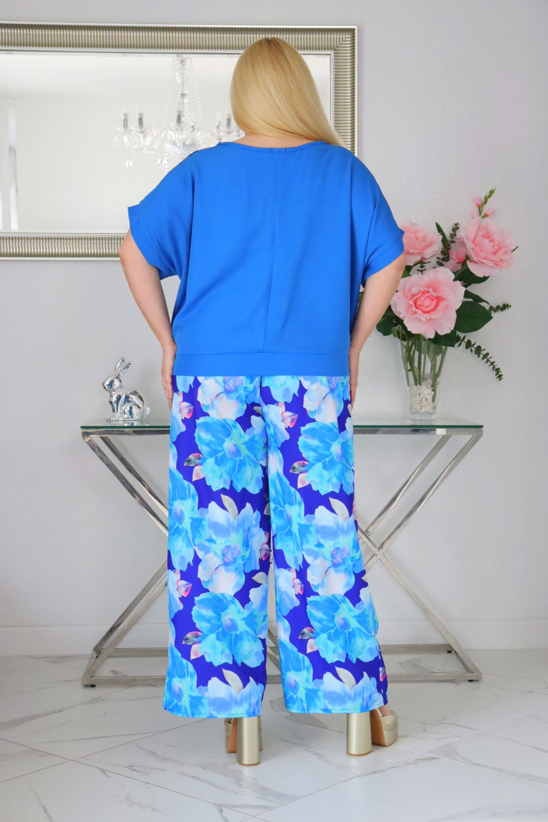 🇵🇱 Polski ProduktKomplet zestaw bluzka ze spodniami 100% naturalny skład PRINT NIEBIESKIE KWIATY
