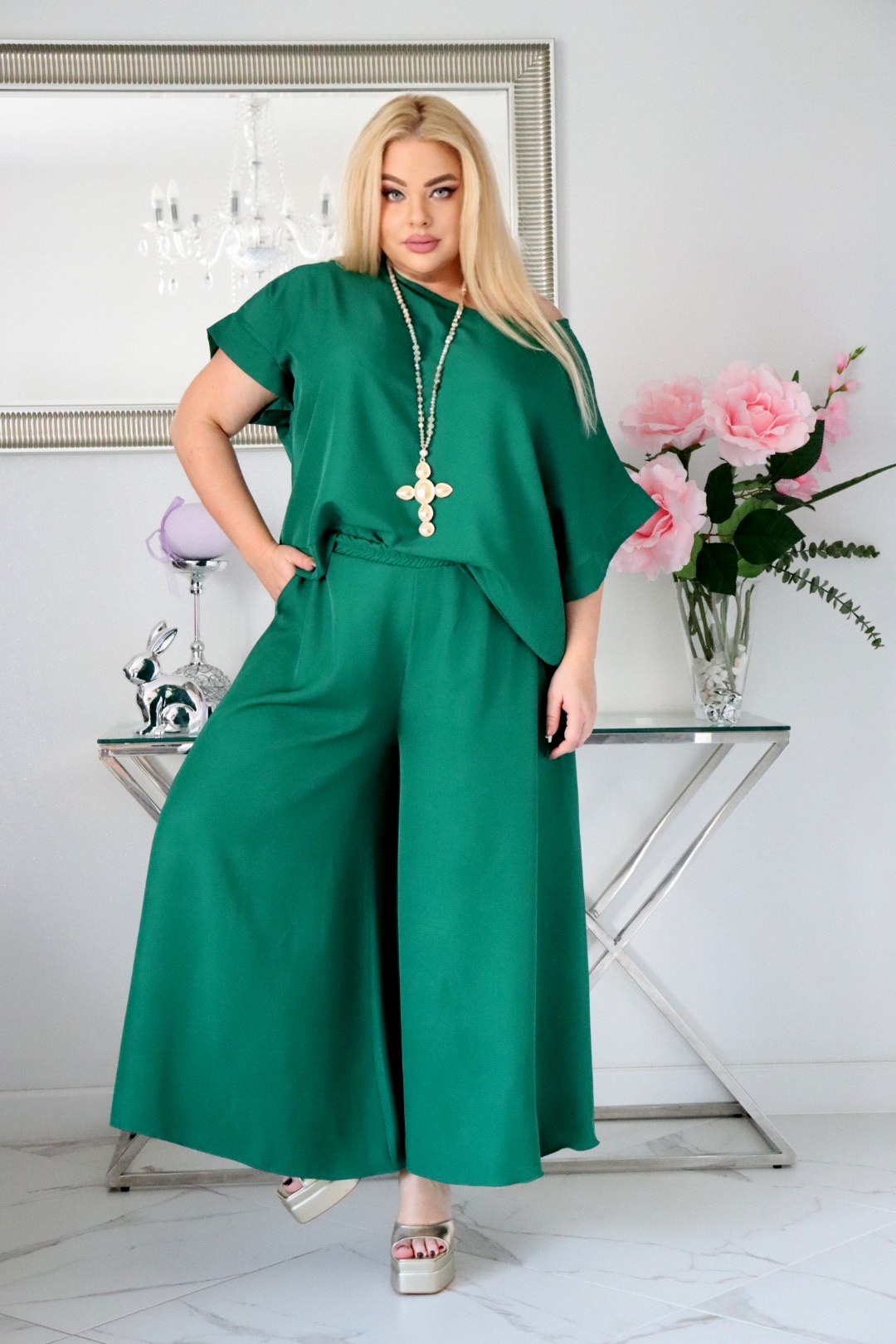 Komplet zestaw bluzka ze spodniami 100% naturalny skład zielony