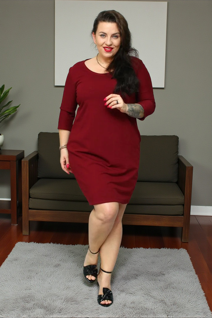 🇵🇱 Polski ProduktSukienka Ada bombka oversize 100% BAWEŁNA POLSKI DRES bordo