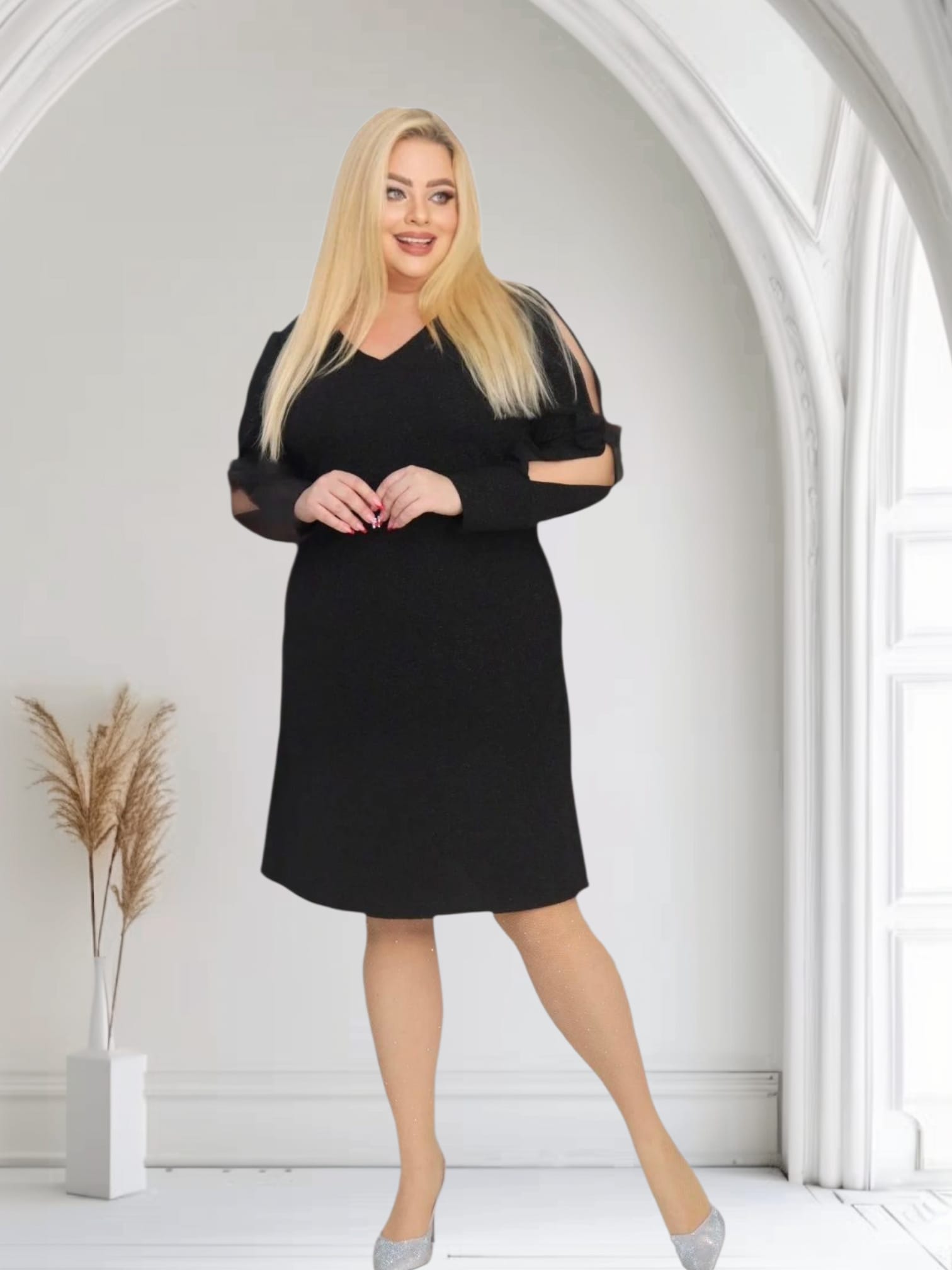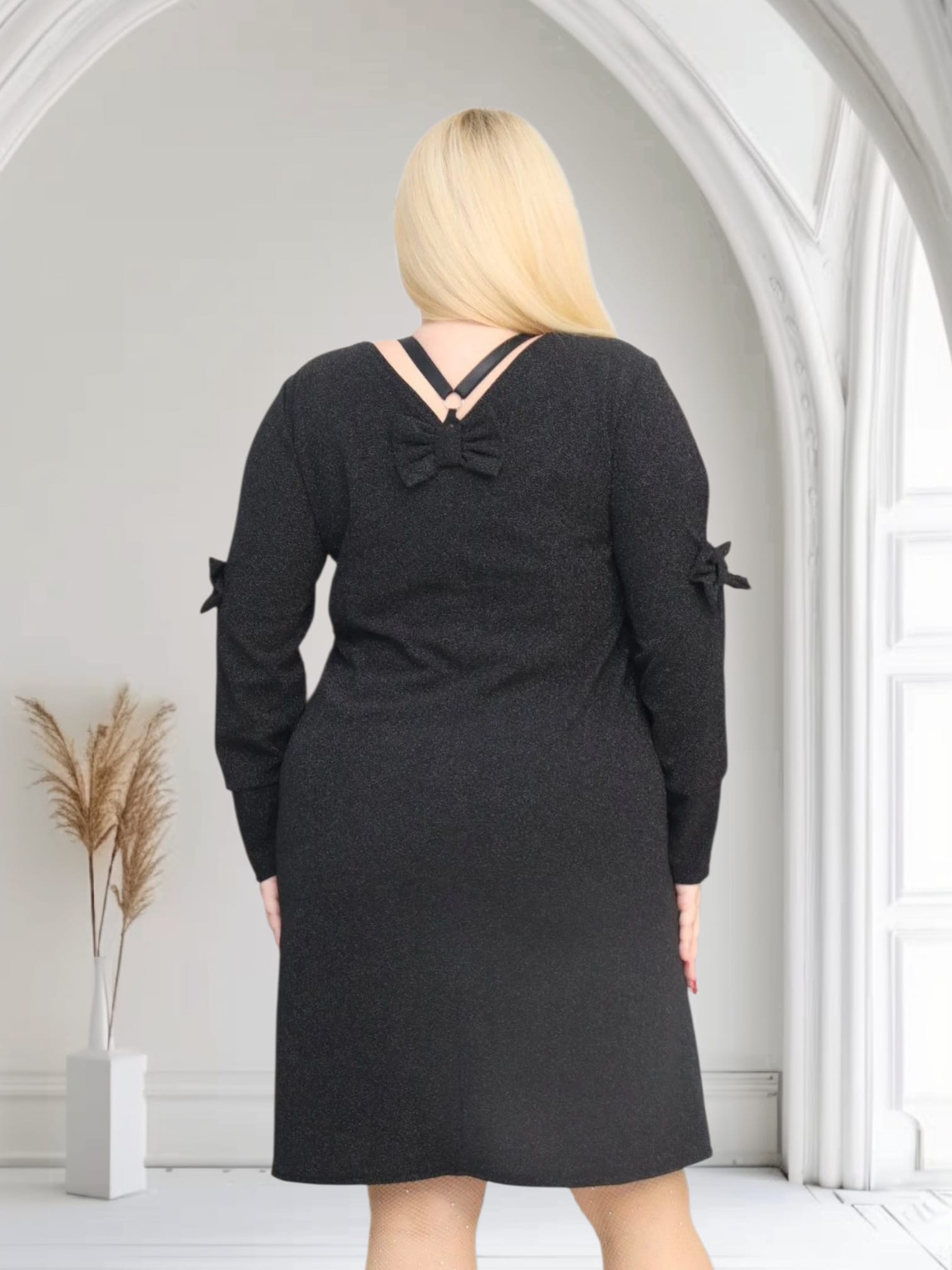 🇵🇱 Polski ProduktSukienka Anja trapezowa rozcięte rękawy z kokardkami brilliance czarna