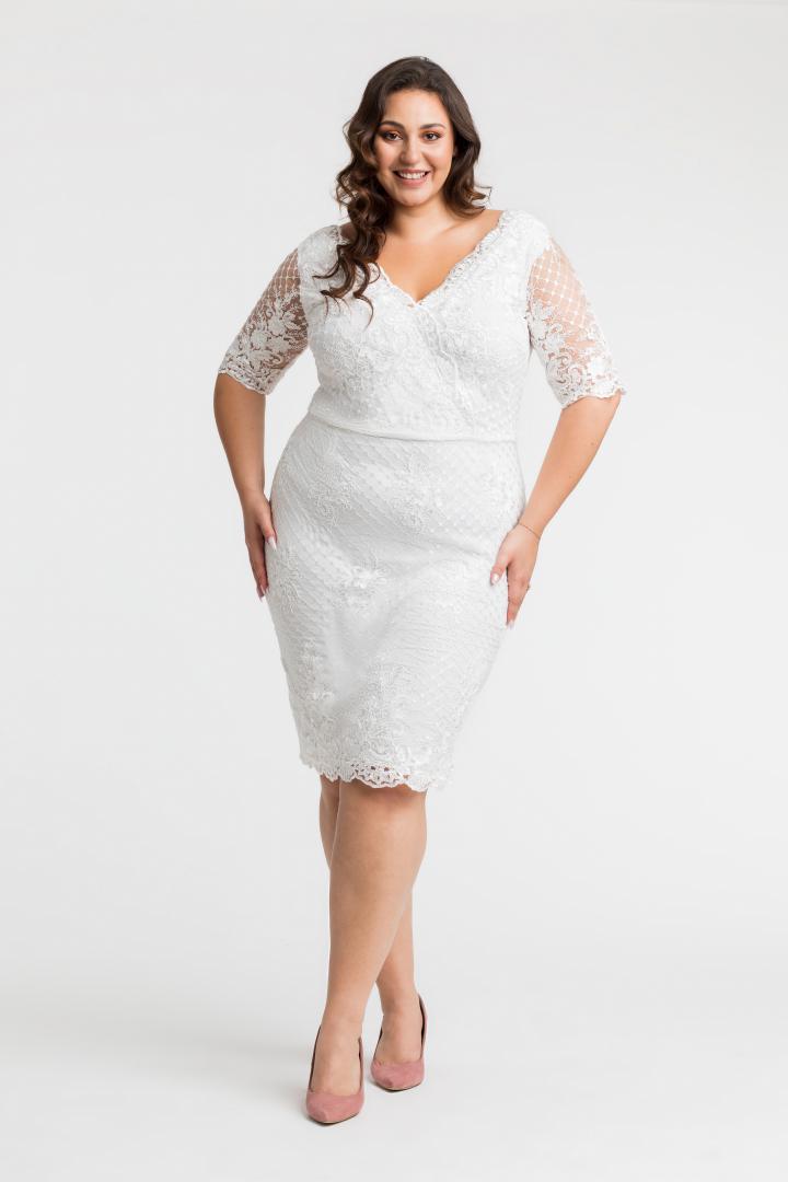 🇵🇱 Polski ProduktSukienka Aubrey ołówkowa ekskluzywna koronkowa ecru ŚLUB POPRAWINY PROMOCJA