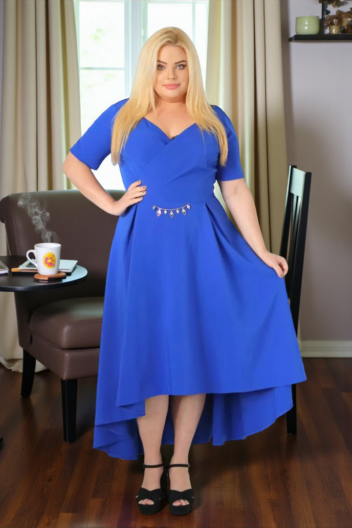 ? Modelująca sukienka kopertowa z biżuteryjnym pasem – Elegancja w rozmiarze 36-60. Chabrowa. KOD S1097.