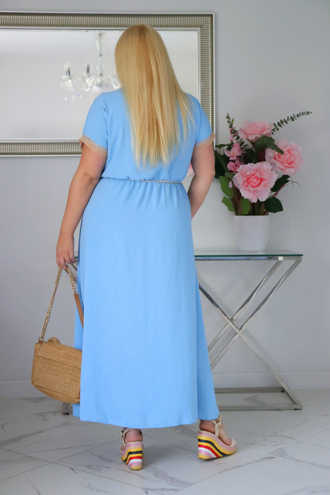 🇵🇱 Polski ProduktSukienka Brenda 100% wiskoza NATURALNY SKŁAD z ozdobnym błękitna