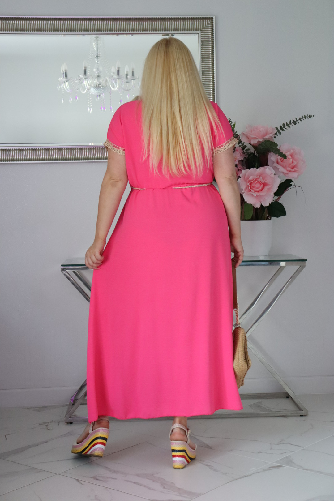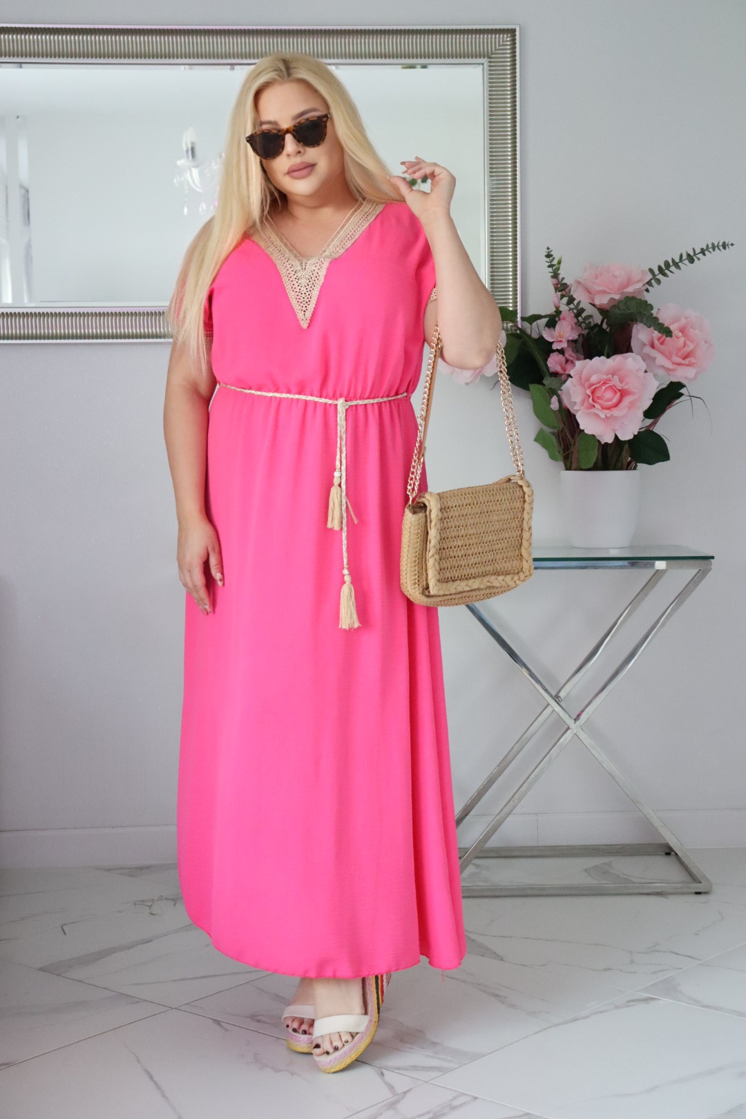 🇵🇱 Polski ProduktSukienka Brenda 100% wiskoza NATURALNY SKŁAD z ozdobnym koralowa