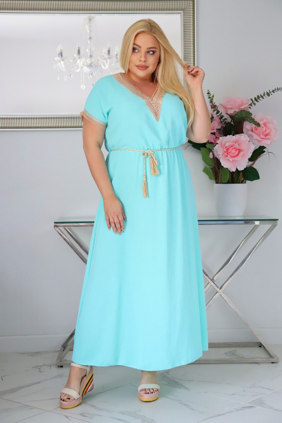 🇵🇱 Polski ProduktSukienka Brenda 100% wiskoza NATURALNY SKŁAD z ozdobnym miętowa