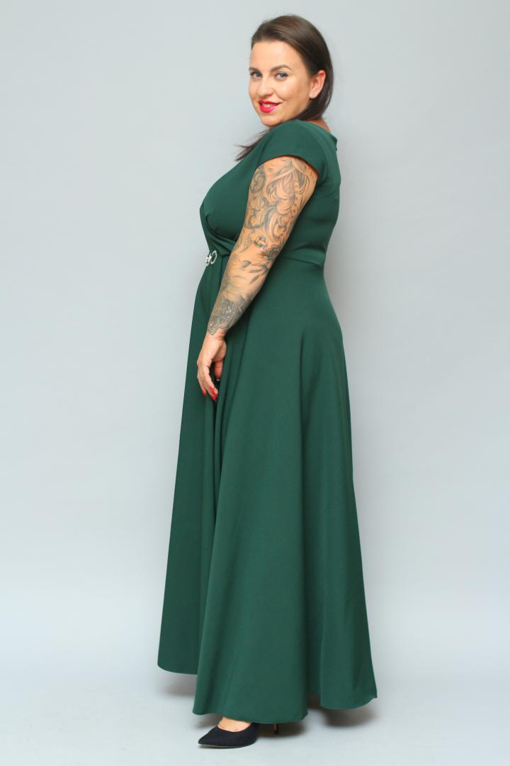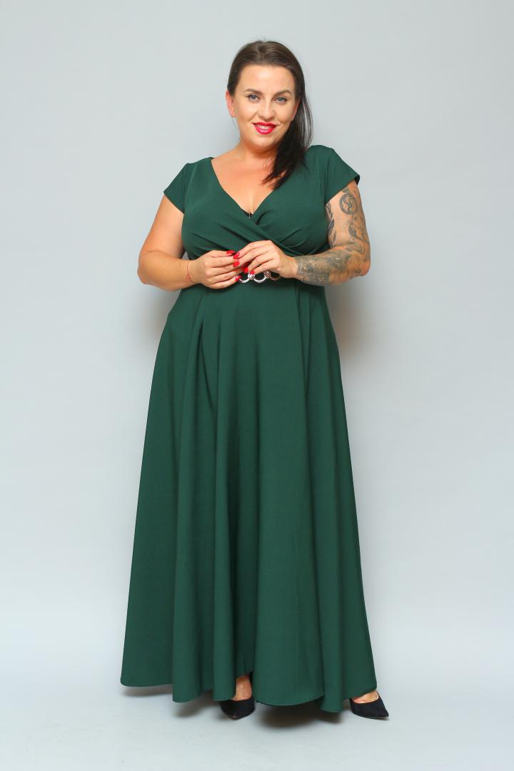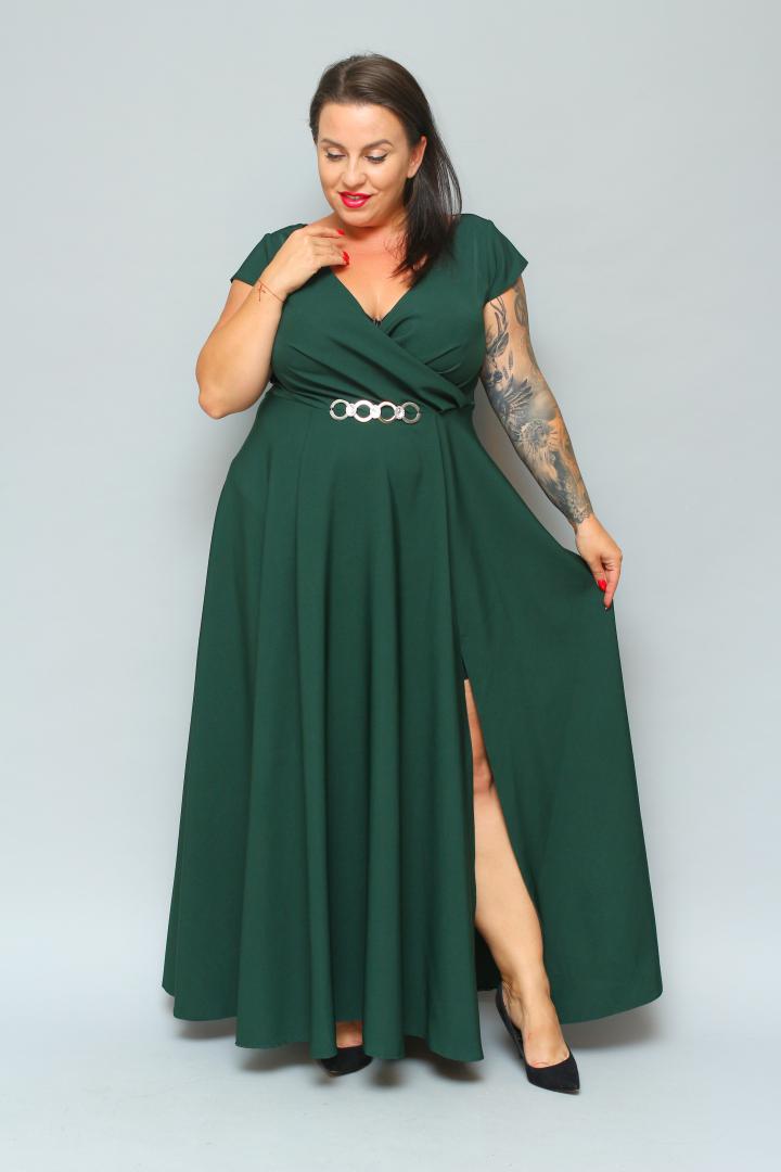 ⭐⭐⭐⭐⭐ 4.8Bestseller562+ sprzedanych!🇵🇱 Polski ProduktSukienka wieczorowa Camilia – rozkloszowany krój, kopertowy dekolt, szykowna klamra. Zobacz film, który pokazuje, jak pięknie się układa! BUTELKOWA ZIELEŃ