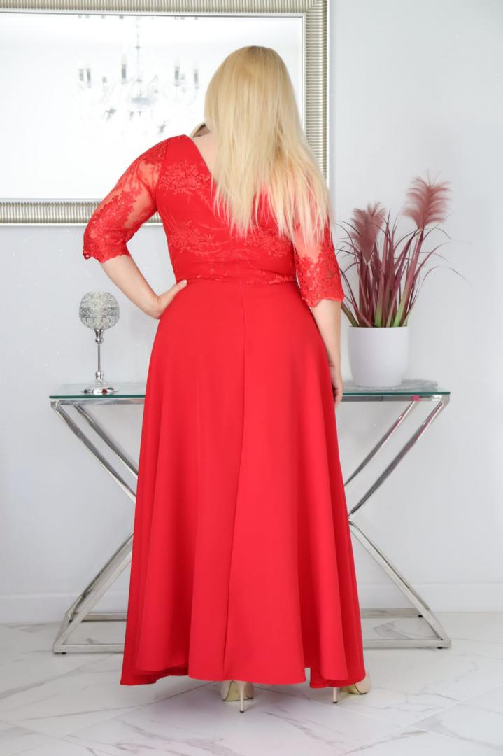 🇵🇱 Polski ProduktSukienka Claudia maxi wieczorowa rozkloszowana ekskluzywna dekolt serek koronka czerwona WYPRZEDAŻ