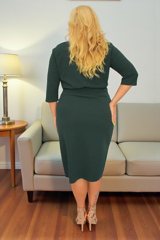 Sukienka jest wykonana z wysokiej jakości dzianiny, która charakteryzuje się rozciągliwością około 4 cm. Materiał nie mechaci się i nie kulkuje bo stawiamy zawsze i tylko na jakość.