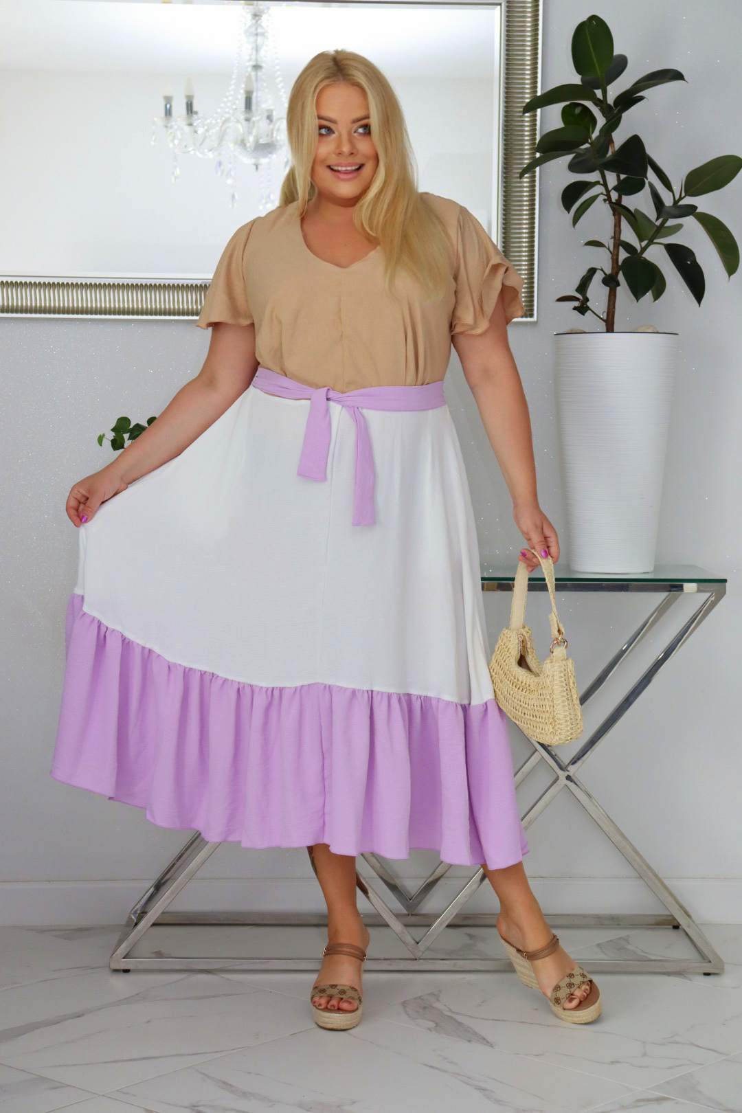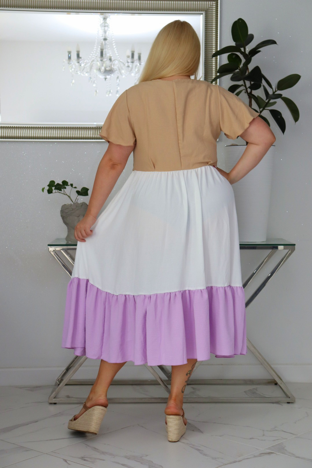 🇵🇱 Polski ProduktSukienka DILETA 100% wiskoza NUDE+ECRU+LILIA NATURALNY SKŁAD PROMOCJA