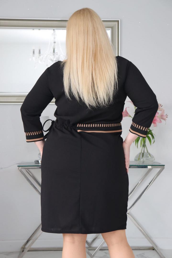 🇵🇱 Polski ProduktSukienka Elif z ozdobną brązowo-czarną taśmą i regulowanym ściągaczem w pasie czarna
