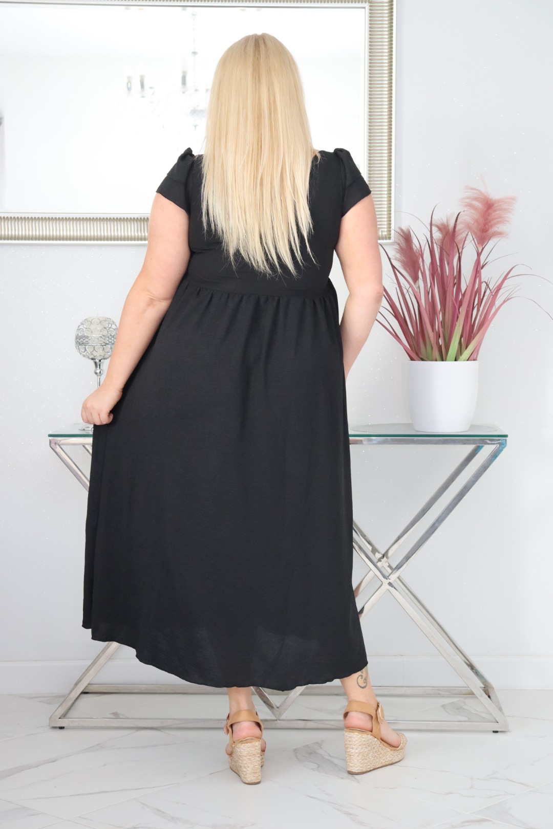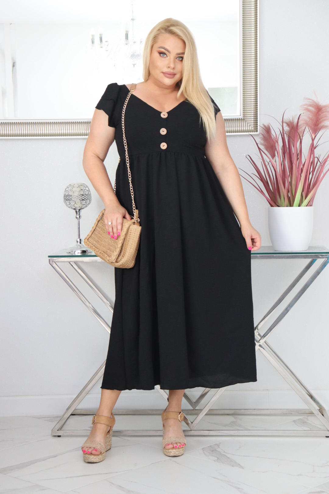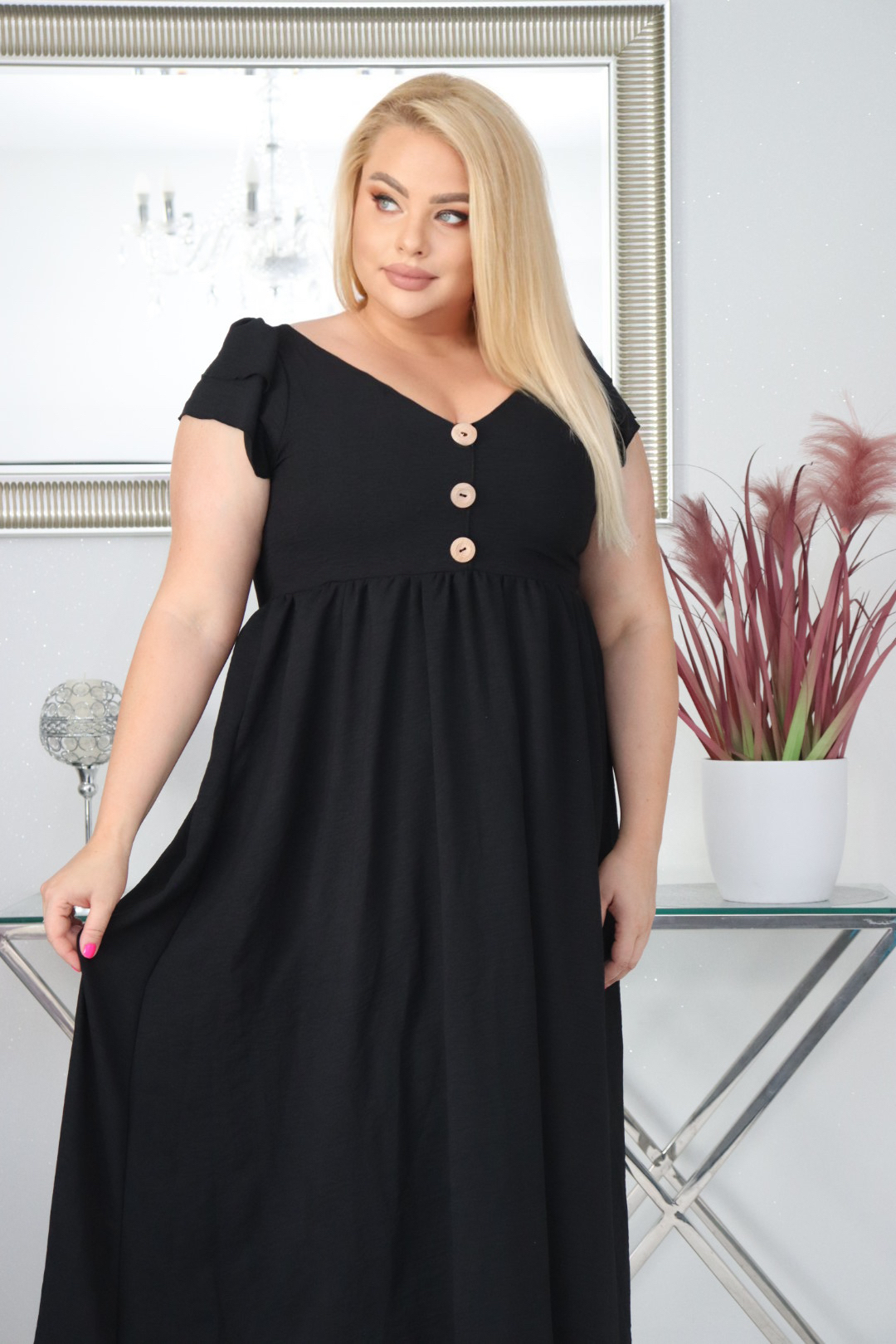 🇵🇱 Polski ProduktSukienka ESTERA trapezowa 100% wiskoza CZARNA NATURALNY SKŁAD