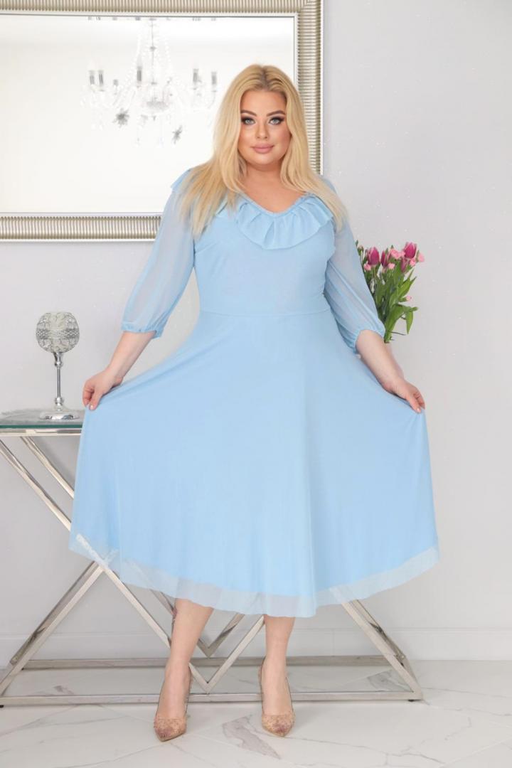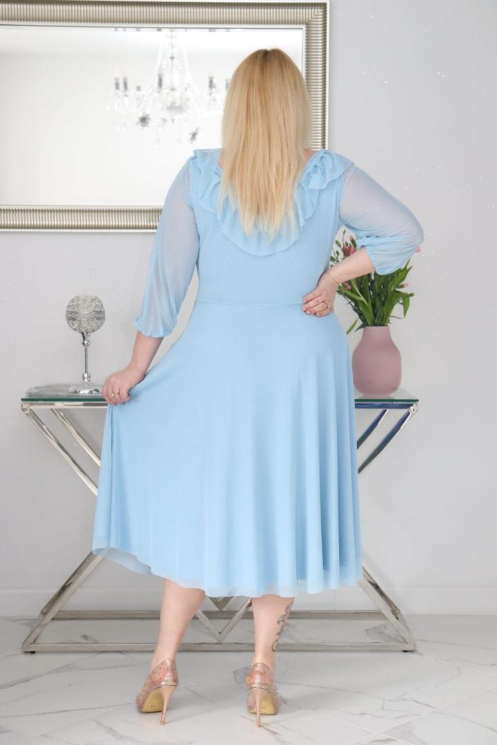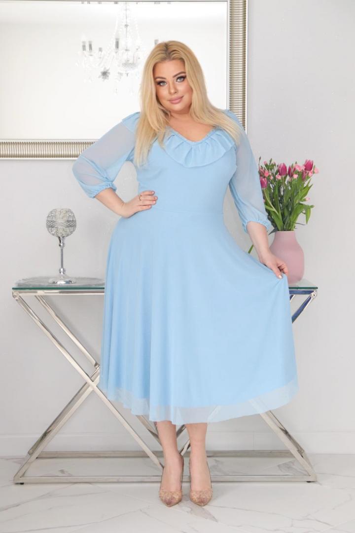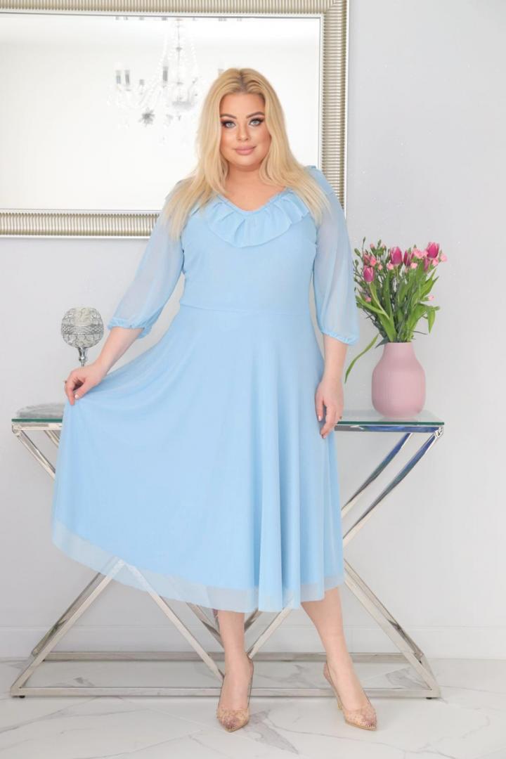 🇵🇱 Polski ProduktSukienka Fabiola lekka zwiewna rozkloszowana tiulowa w groszki błękitna