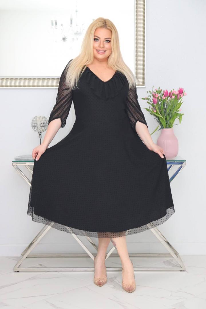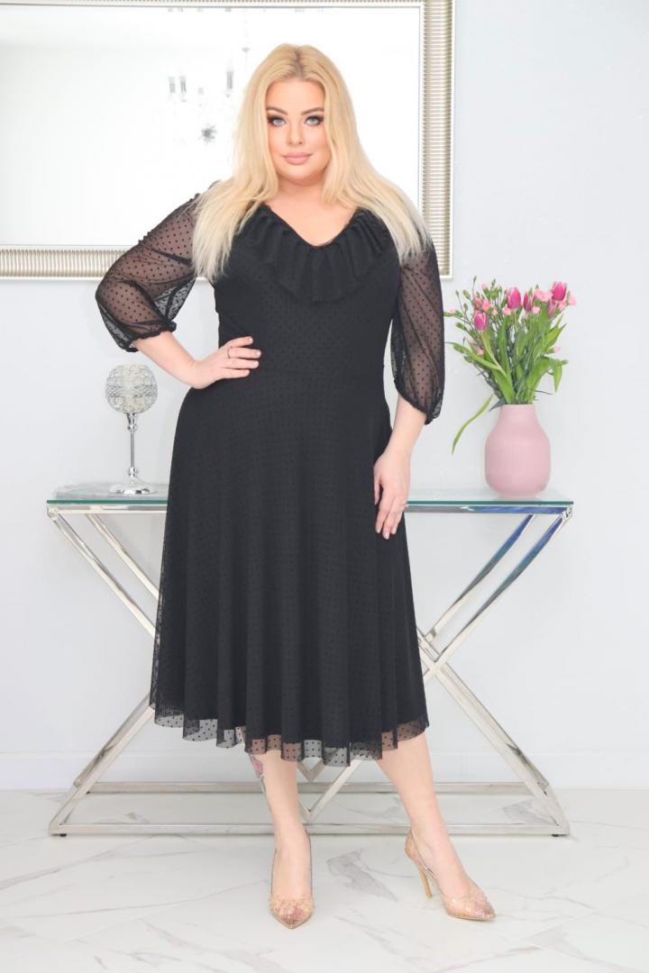 🇵🇱 Polski ProduktSukienka Fabiola lekka zwiewna rozkloszowana tiulowa w groszki czarna