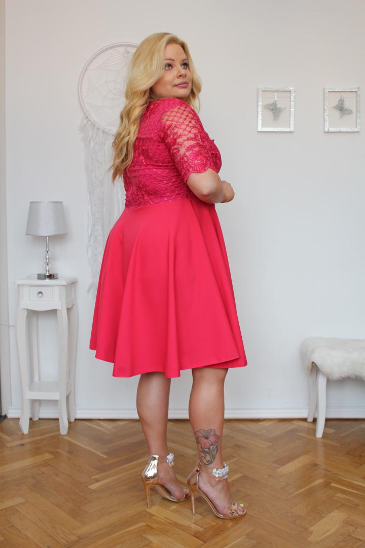 🇵🇱 Polski ProduktSukienka Felicia rozkloszowana ekskluzywna koronka amarant