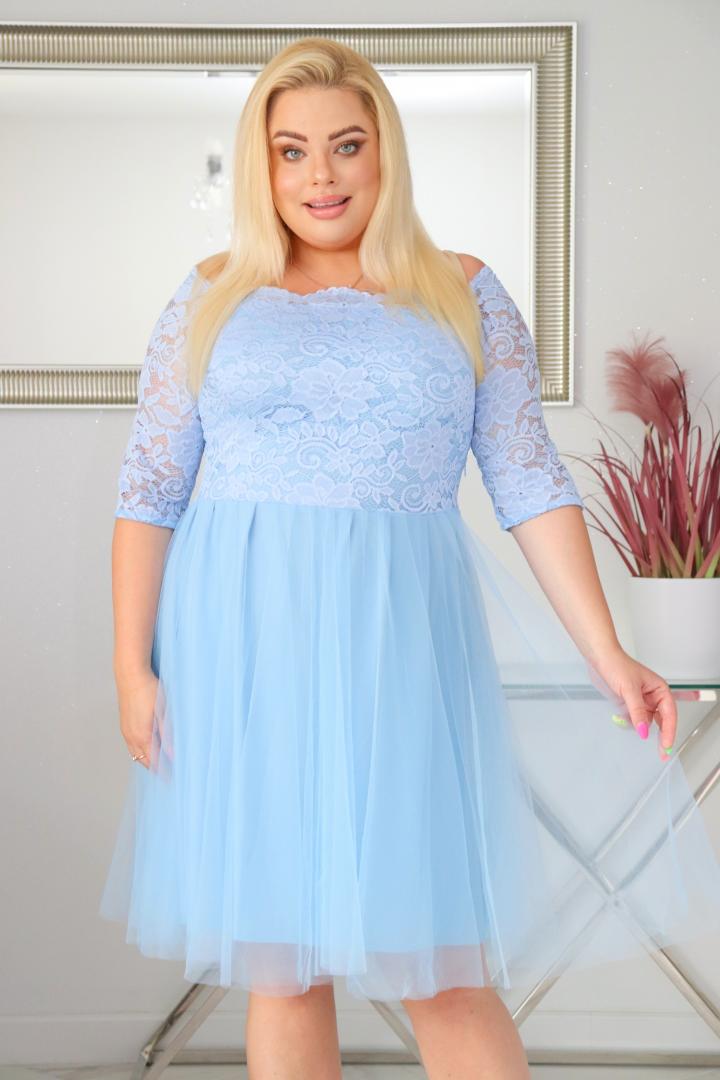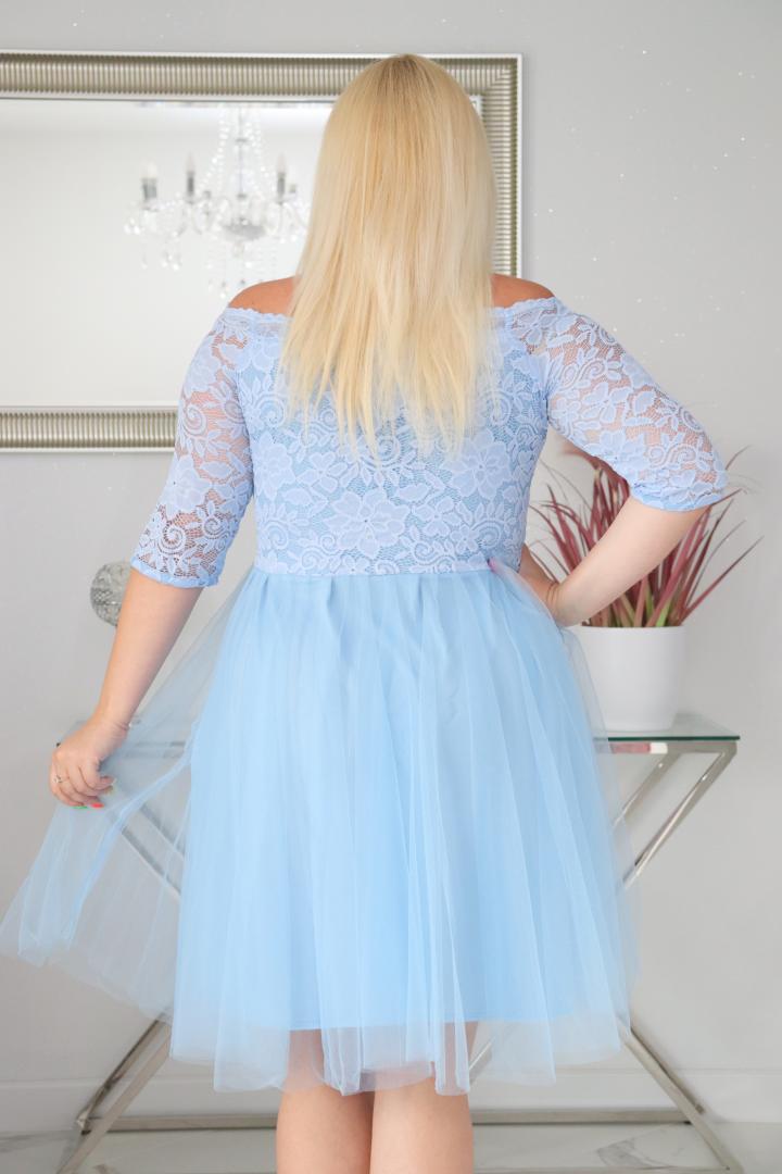🇵🇱 Polski ProduktSukienka Femm rozkloszowana koronkowa góra i tiulowy dół błękit