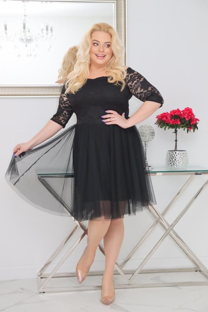 🇵🇱 Polski ProduktSukienka Femm rozkloszowana koronkowa góra i tiulowy dół czarna