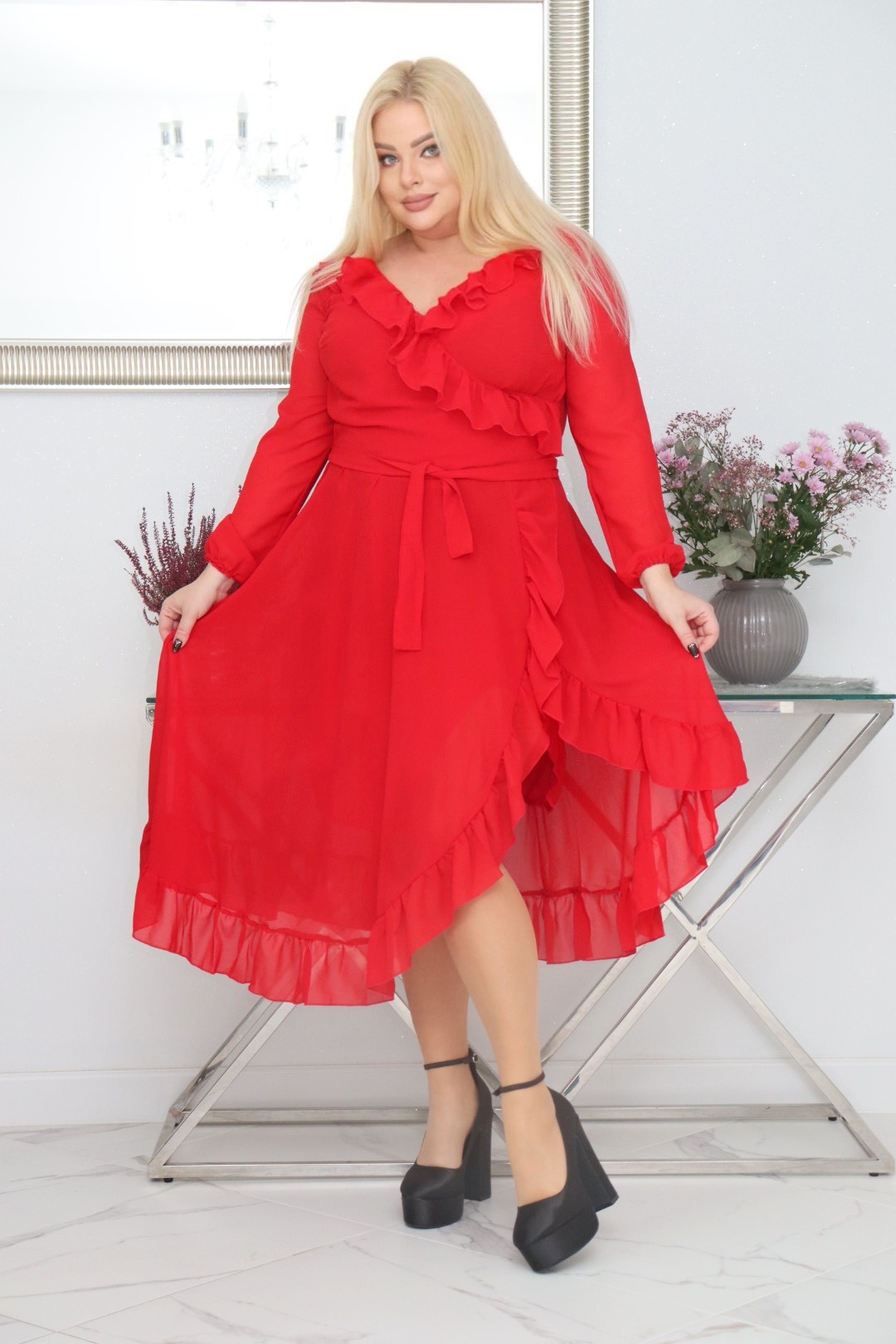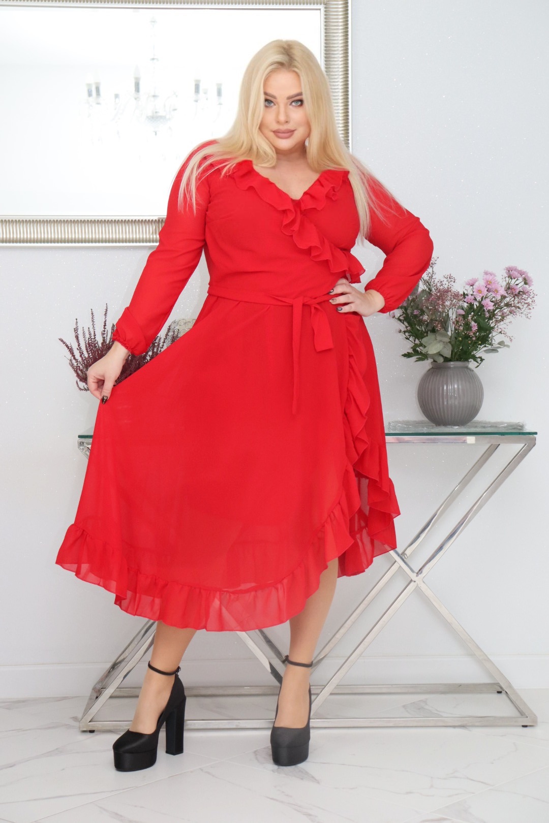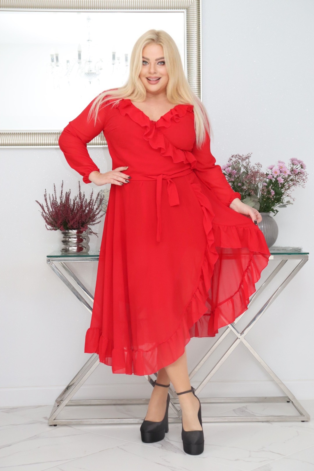 🇵🇱 Polski ProduktSukienka Florencja rozkloszowana zwiewna z szyfonu kopertowy dekolt chabrowa. WYPRZEDAŻ KOLORU CHABROWEGO!