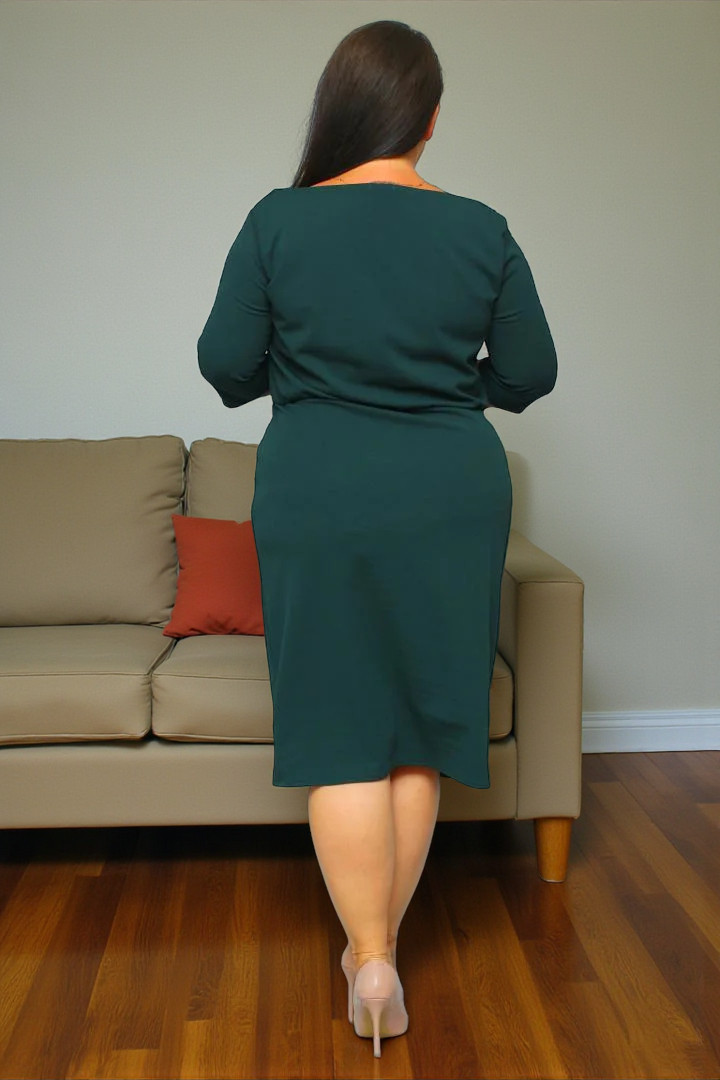 🇵🇱 Polski ProduktSukienka Jolanda dzianinowa z marszczoną gumą butelkowa zieleń