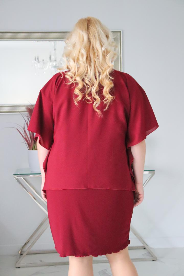 🇵🇱 Polski ProduktSukienka Kama z prostokątną szyfonową narzutką bordowa