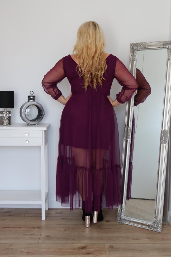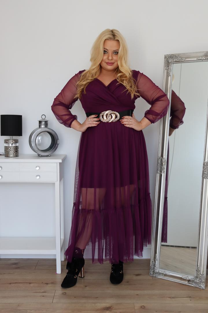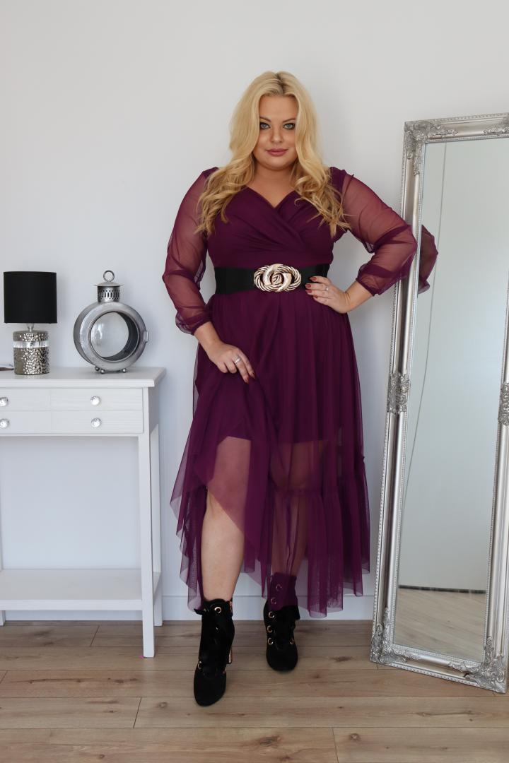Sukienka klasyczna,lekka zwiewna rozkloszowana fioletowy tiul. A007. MEGA WYPRZEDAŻ! ostatni rozmiar 46