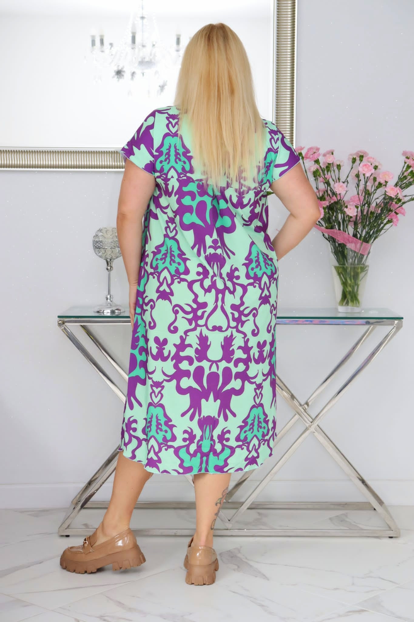 🇵🇱 Polski ProduktSukienka Kloe klasyczna niezwykle wygodna i szykowna fioletowe wzory
