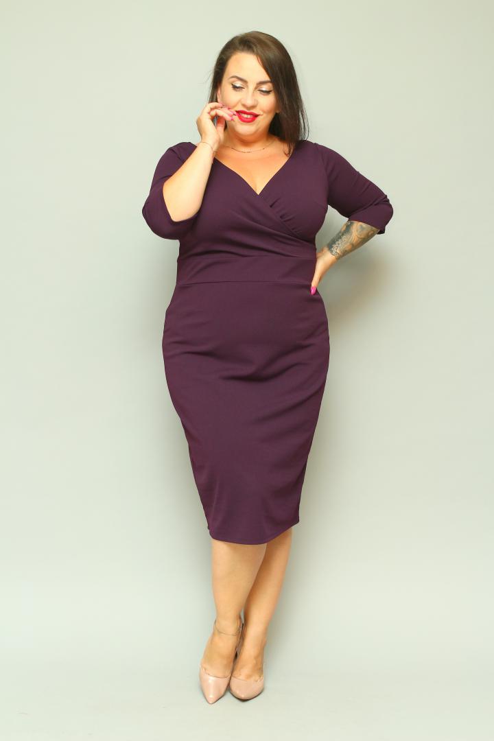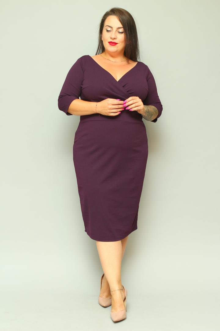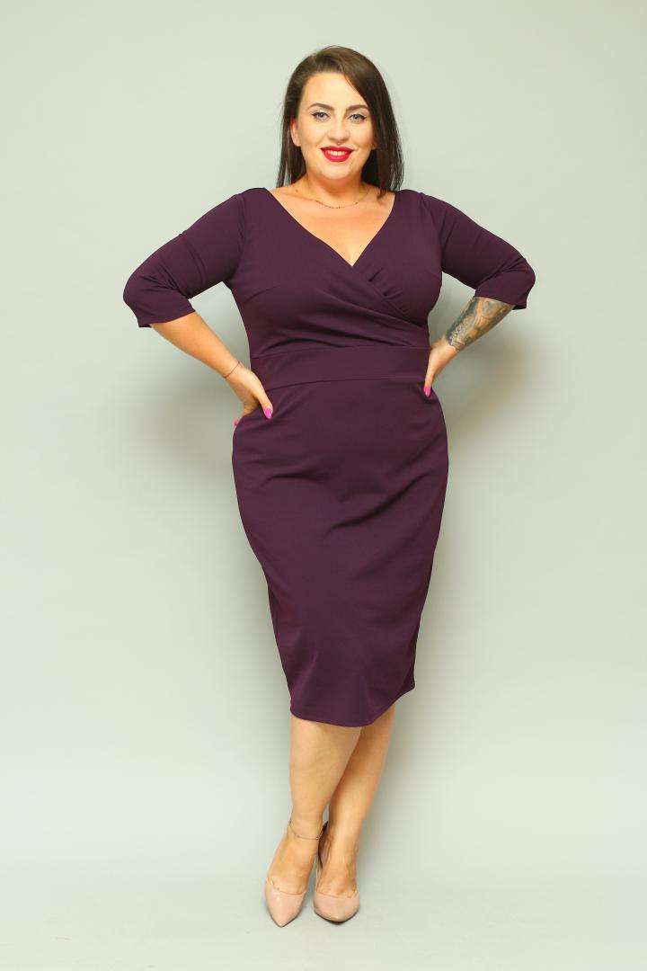 🇵🇱 Polski ProduktSukienka kopertowy dekolt śliwka gładka.A001.MEGA WYPRZEDAŻ !