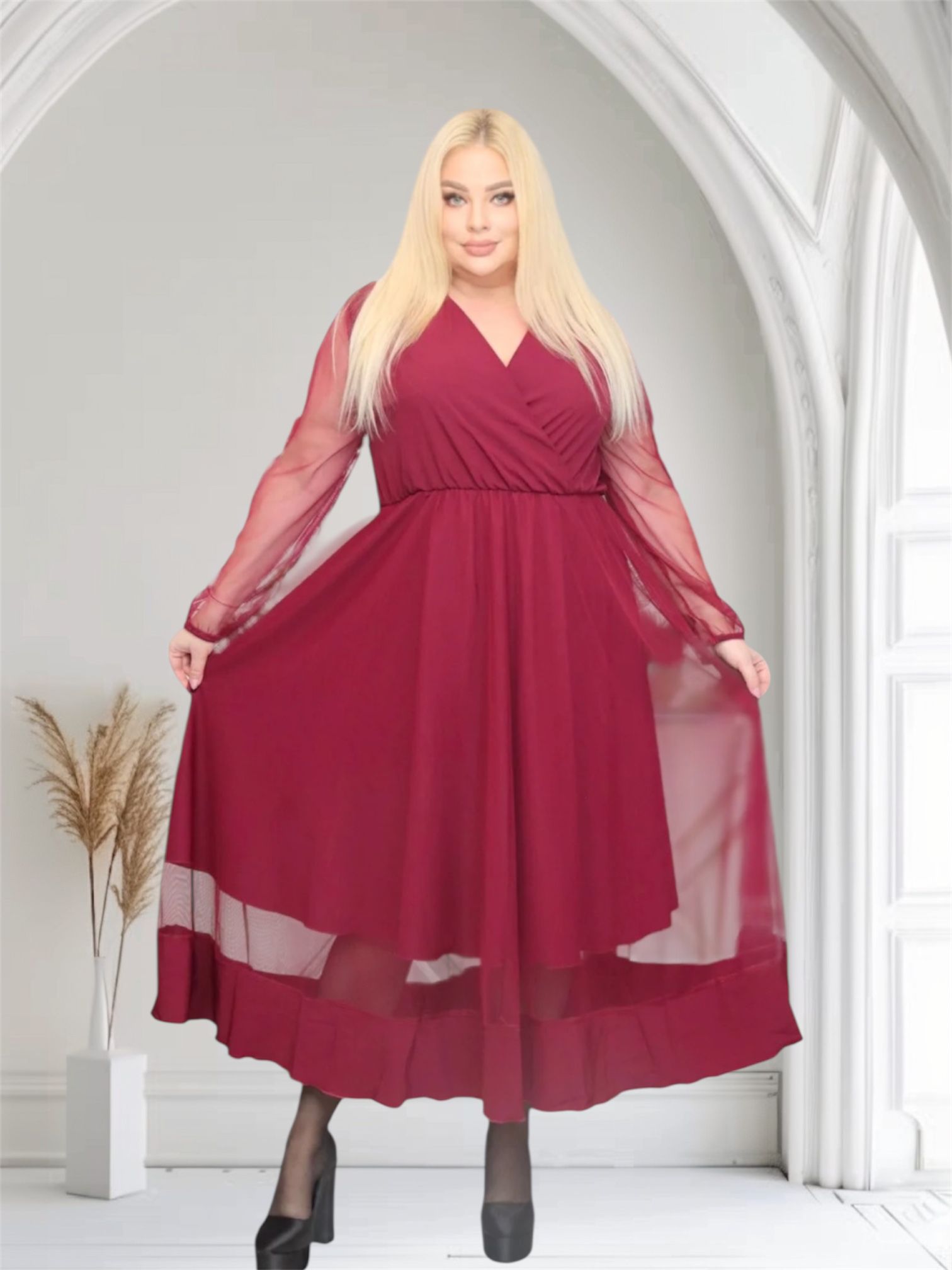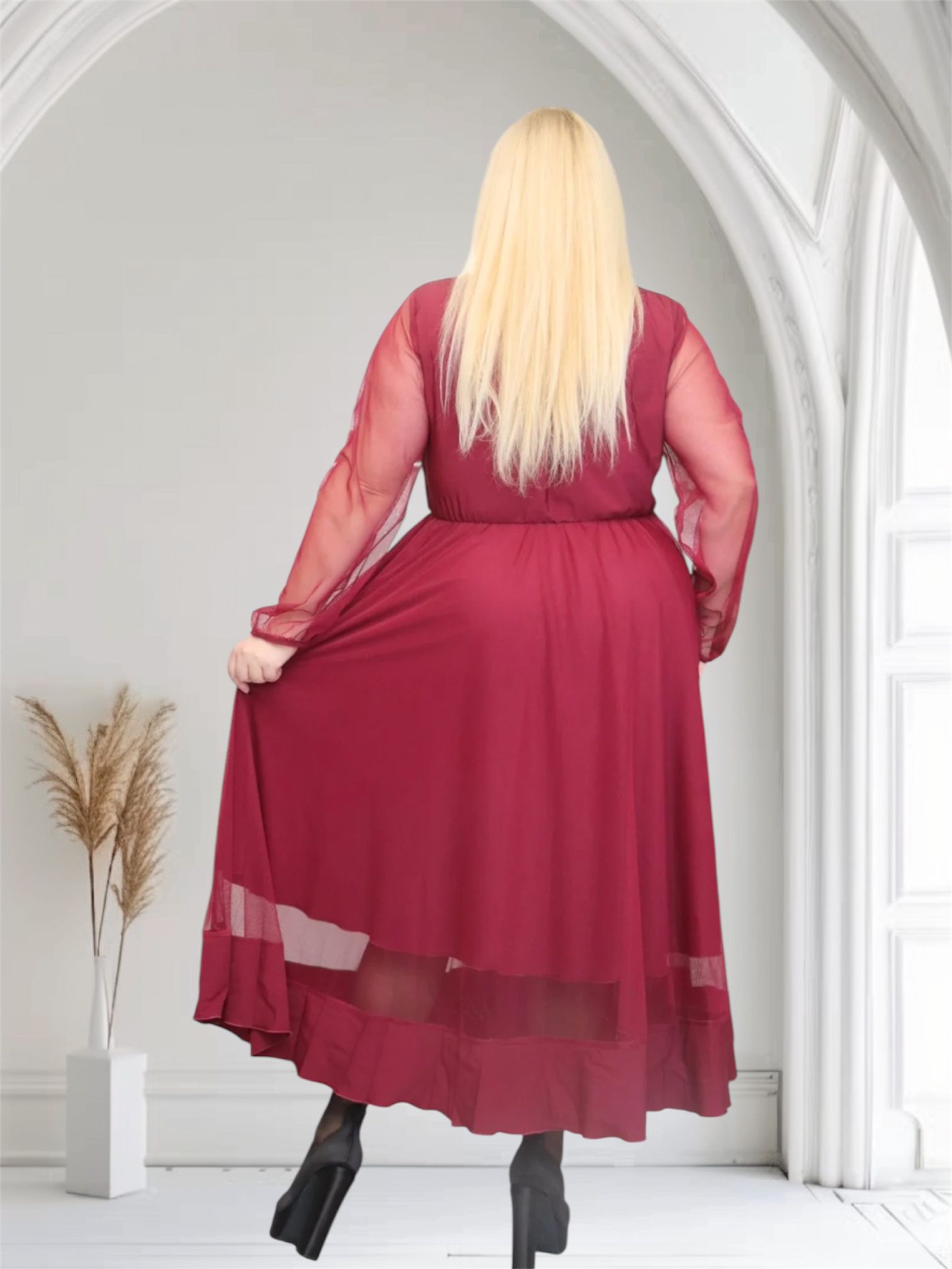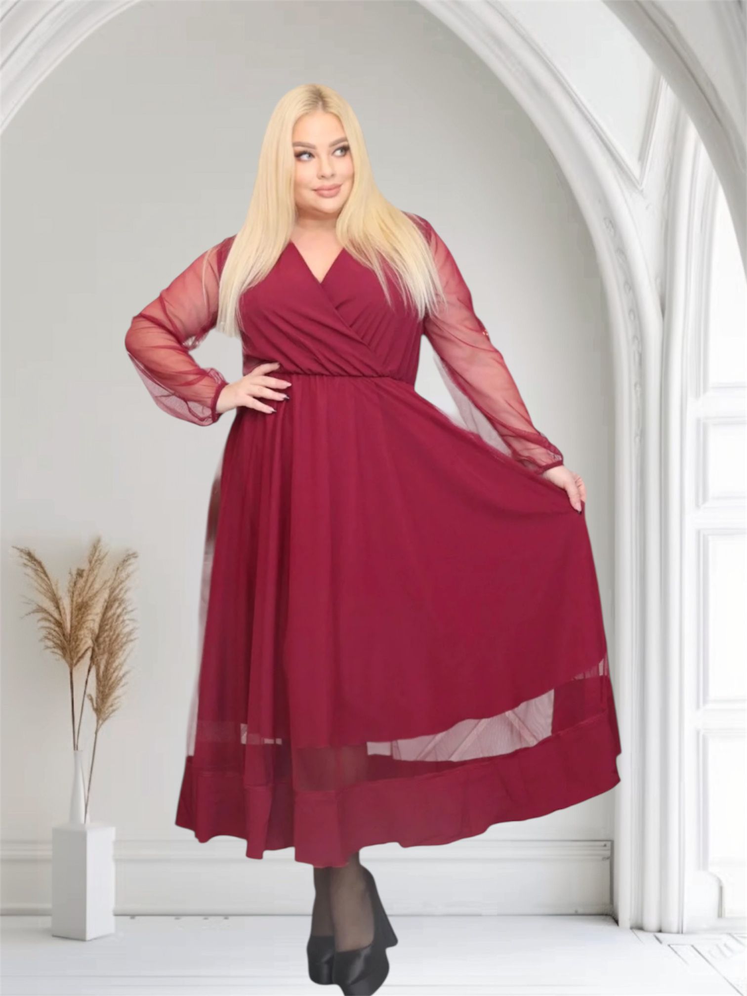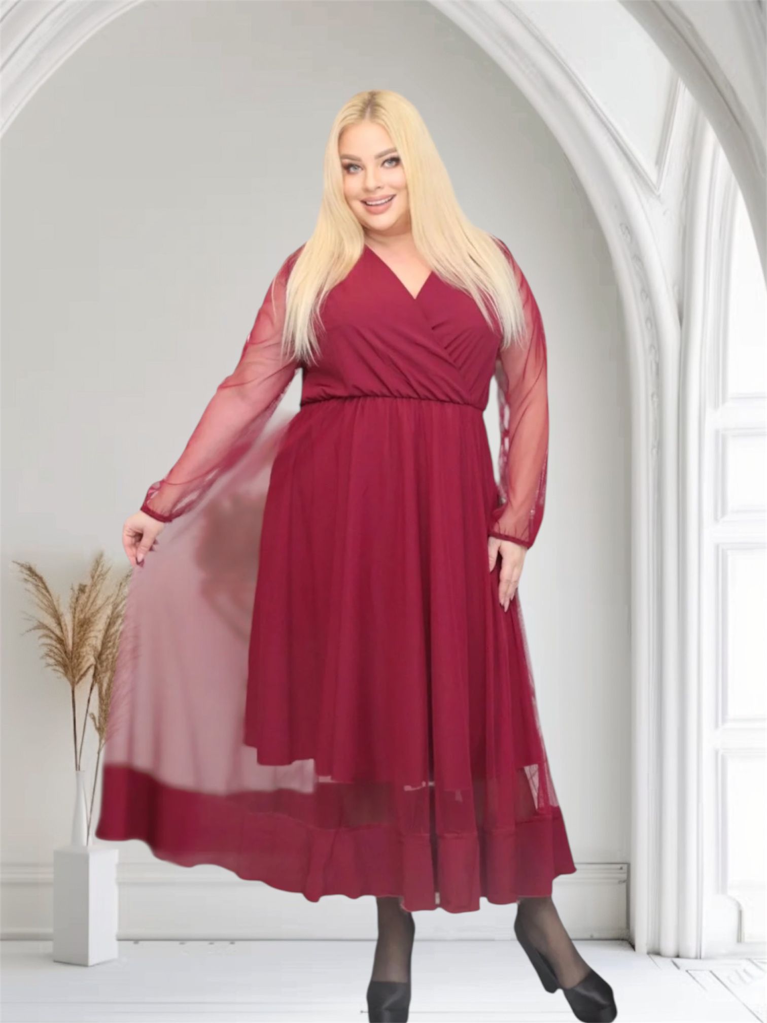 Sukienka Korina lekka zwiewna rozkloszowana bordowa tiul