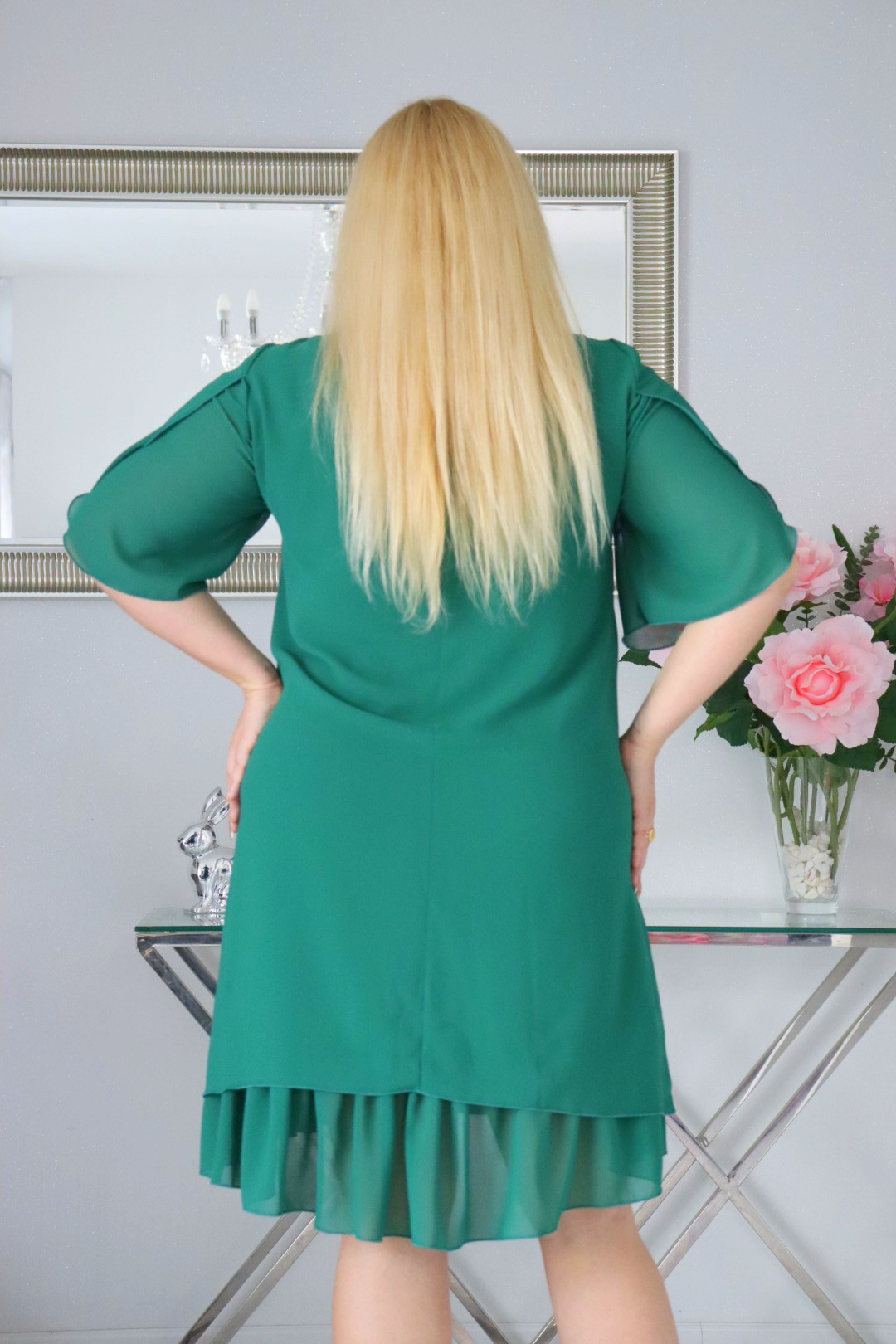 🇵🇱 Polski ProduktSukienka Larija z falbanką z żorżety szyfonowa ZIELONA