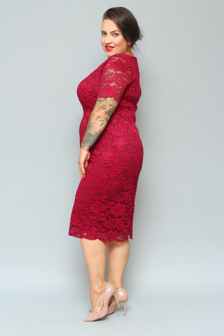 🇵🇱 Polski ProduktSukienka Laura ołówkowa koronkowa dekolt V bordo kwiatki