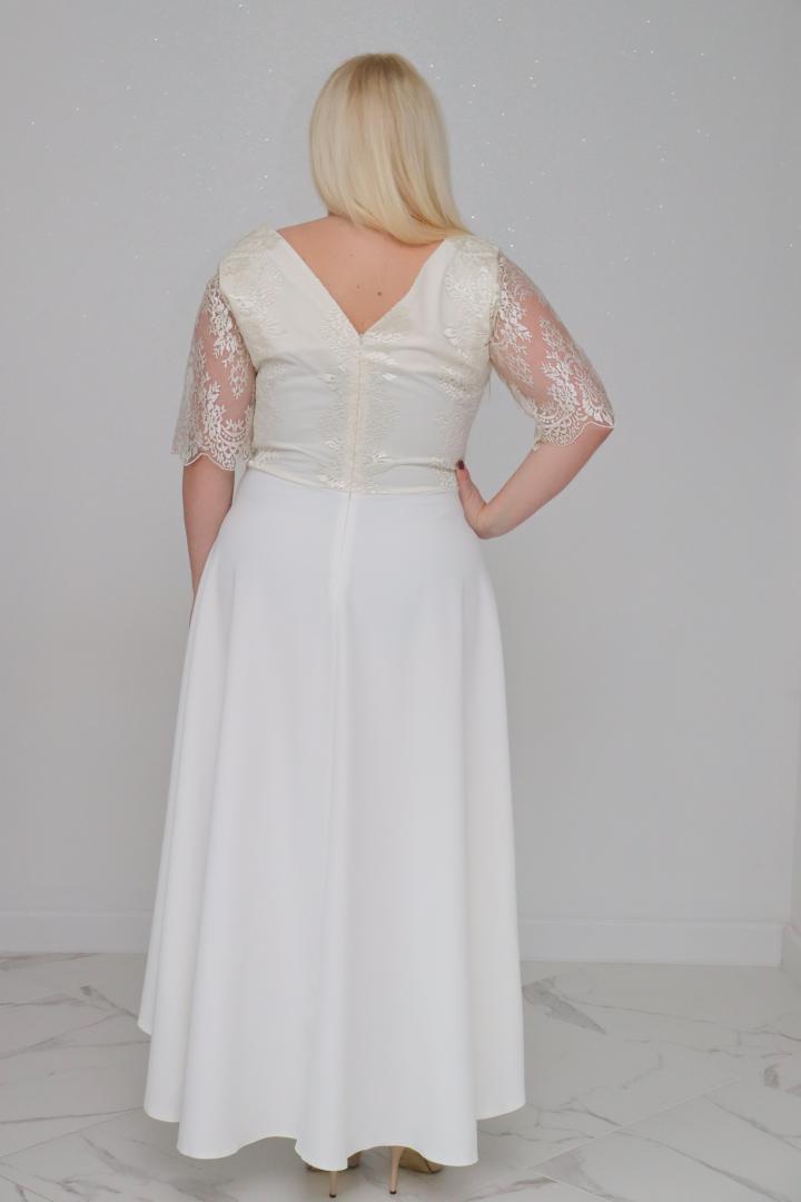 🇵🇱 Polski ProduktSukienka Layla asymetryczna rozkloszowana kopertowy dekolt ekskluzywna koronka biała