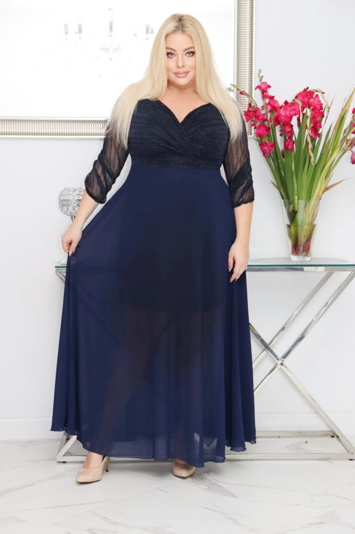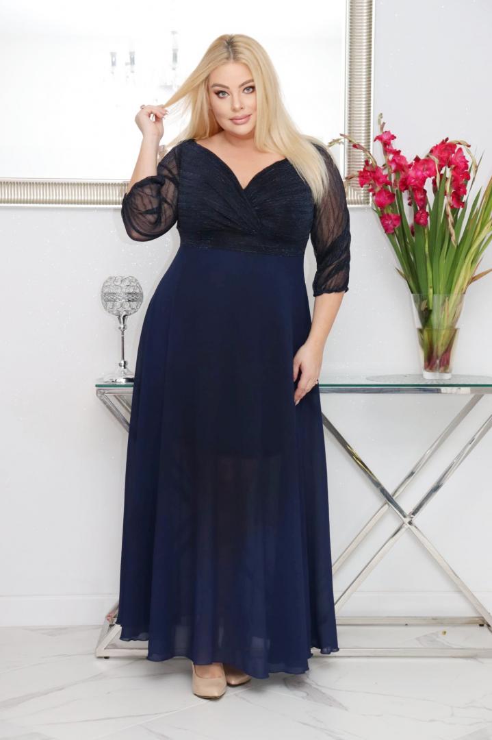 🇵🇱 Polski ProduktSukienka Lozana łączy piękno tiulu z wygodą kopertowego dekoltu. Lekka, stylowa, szyfonowy dół. Granatowa.