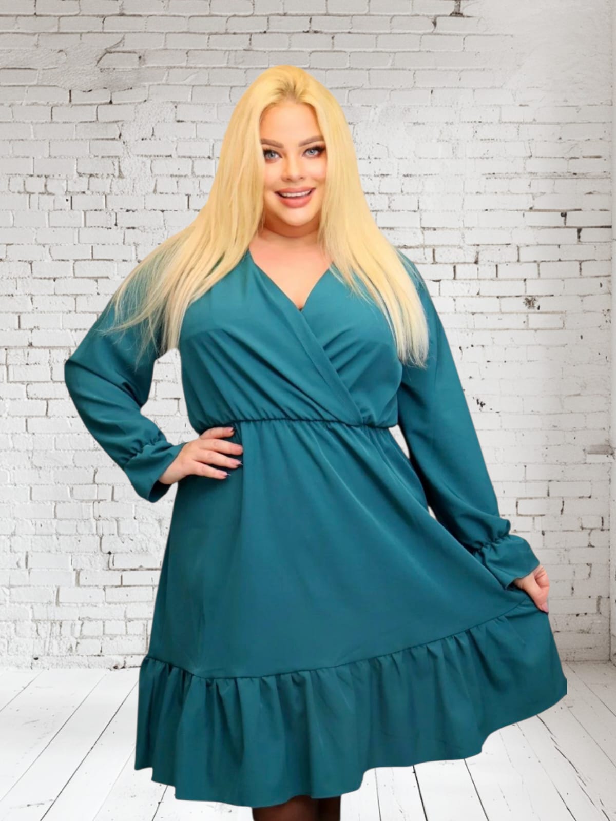 🇵🇱 Polski ProduktSukienka Lundia rozkloszowana zwiewna tkanina silk kopertowy dekolt butelkowa zieleń