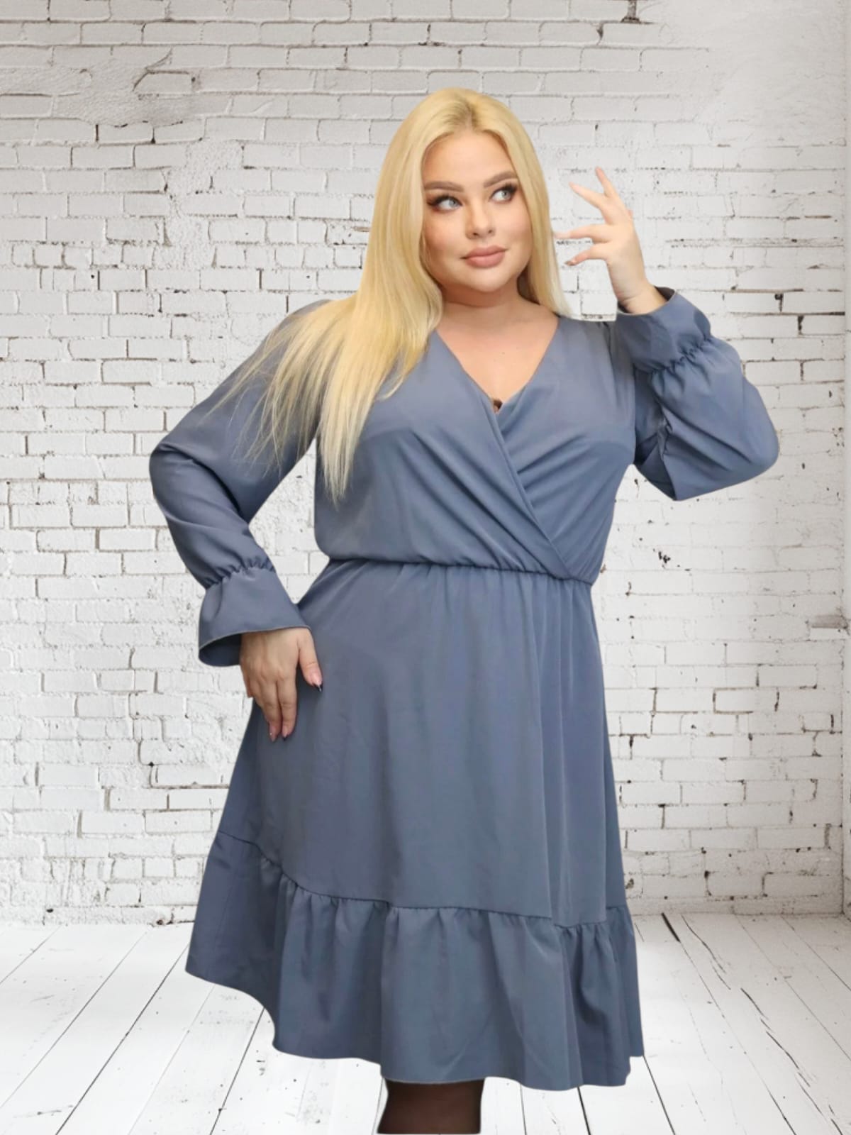 🇵🇱 Polski ProduktSukienka Lundia rozkloszowana zwiewna tkanina silk kopertowy dekolt grafitowa