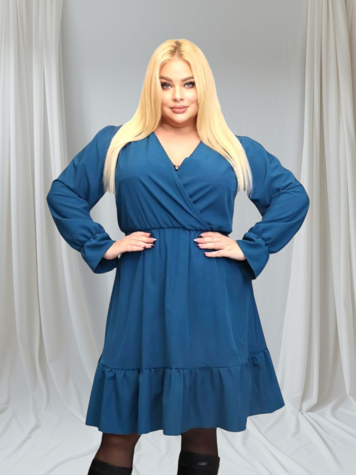 🇵🇱 Polski ProduktSukienka Lundia rozkloszowana zwiewna tkanina silk kopertowy dekolt morska