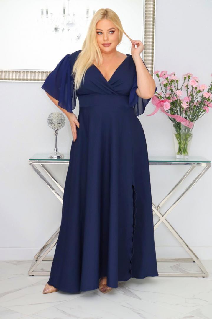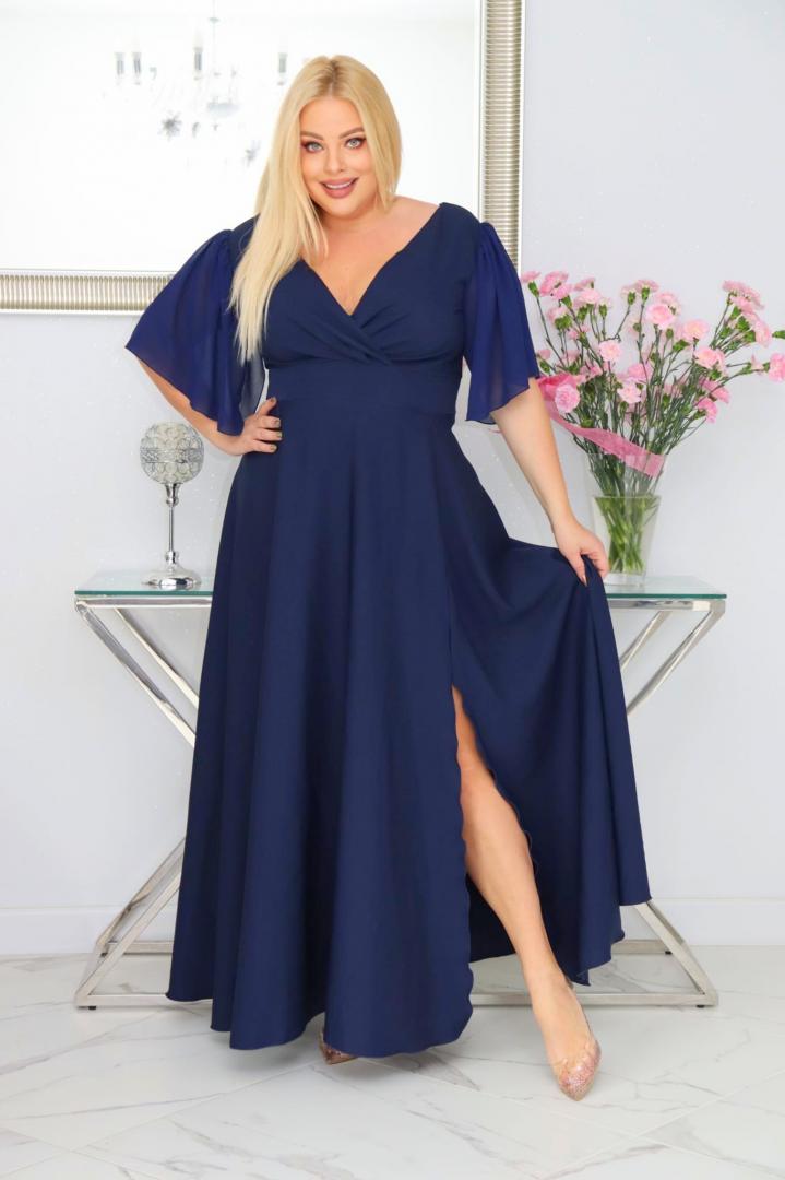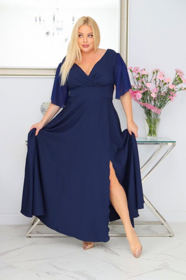 Bestseller257+ sprzedanych!🇵🇱 Polski ProduktMalwa – odkryj sukienkę z lekkością szyfonowych rękawów. GRANATOWA