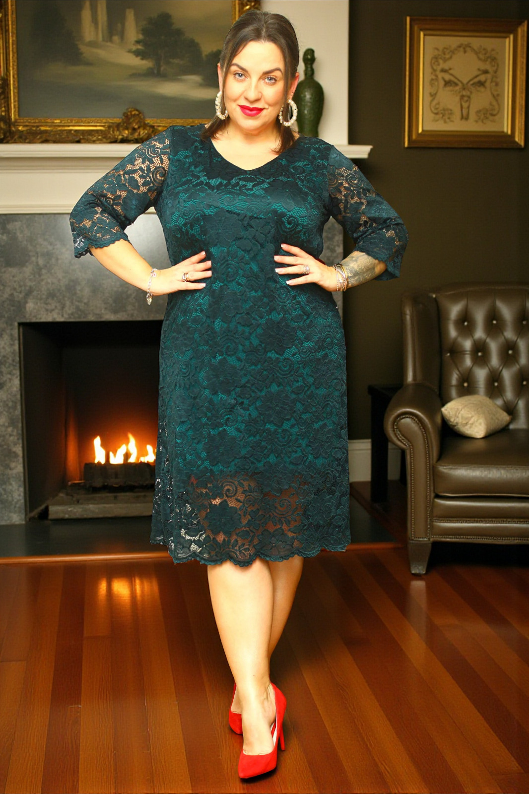 Sukienka jest wykonana z wysokiej jakości lekko elastycznej koronki oraz warstwy spodniej podszewki.