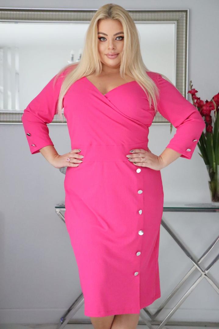 Sukienka jest wykonana z wysokiej jakości dzianiny, która charakteryzuje się rozciągliwością około 4 cm. Materiał nie mechaci się i nie kulkuje bo stawiamy zawsze i tylko na jakość.
