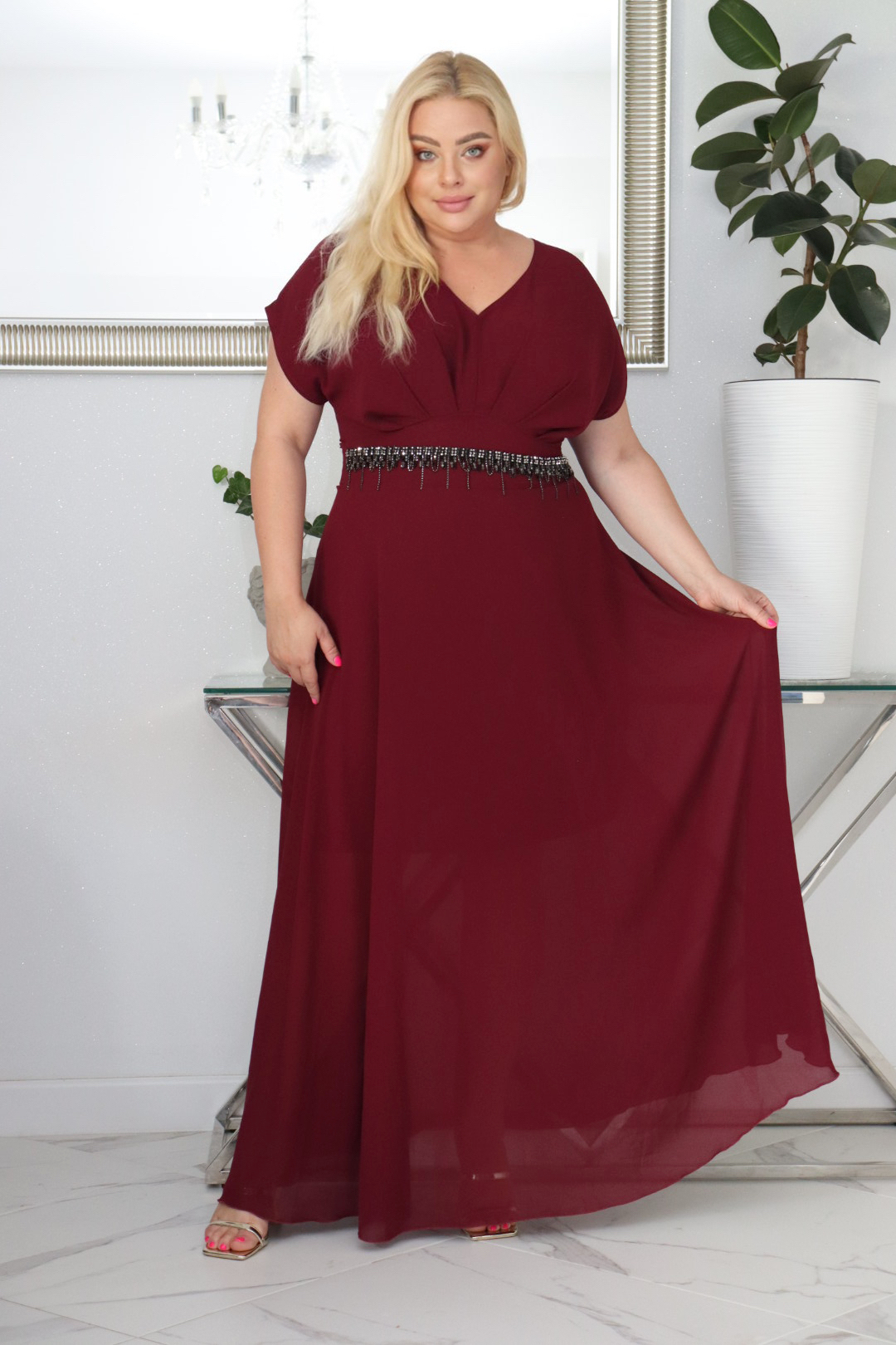 ⭐⭐⭐⭐⭐ 4.9Bestseller110+ sprzedanych!🇵🇱 Polski ProduktAbsolutna IKONA STYLU. Długa MELISA z kryształowym akcentem w talii BORDOWA !