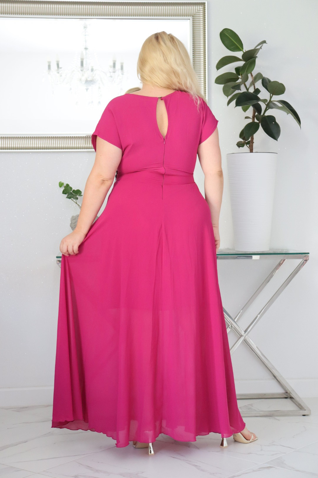 Absolutna IKONA STYLU. Długa MELISA z kryształowym akcentem w talii FUKSJOWA!