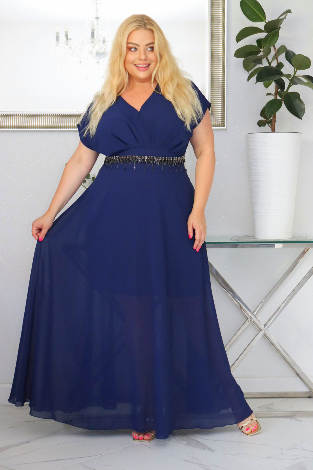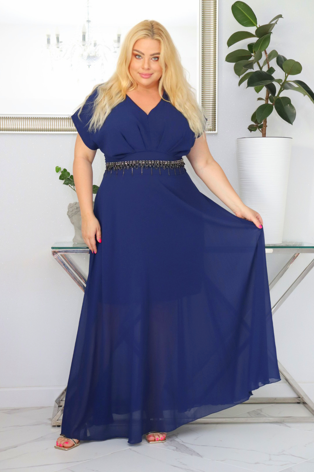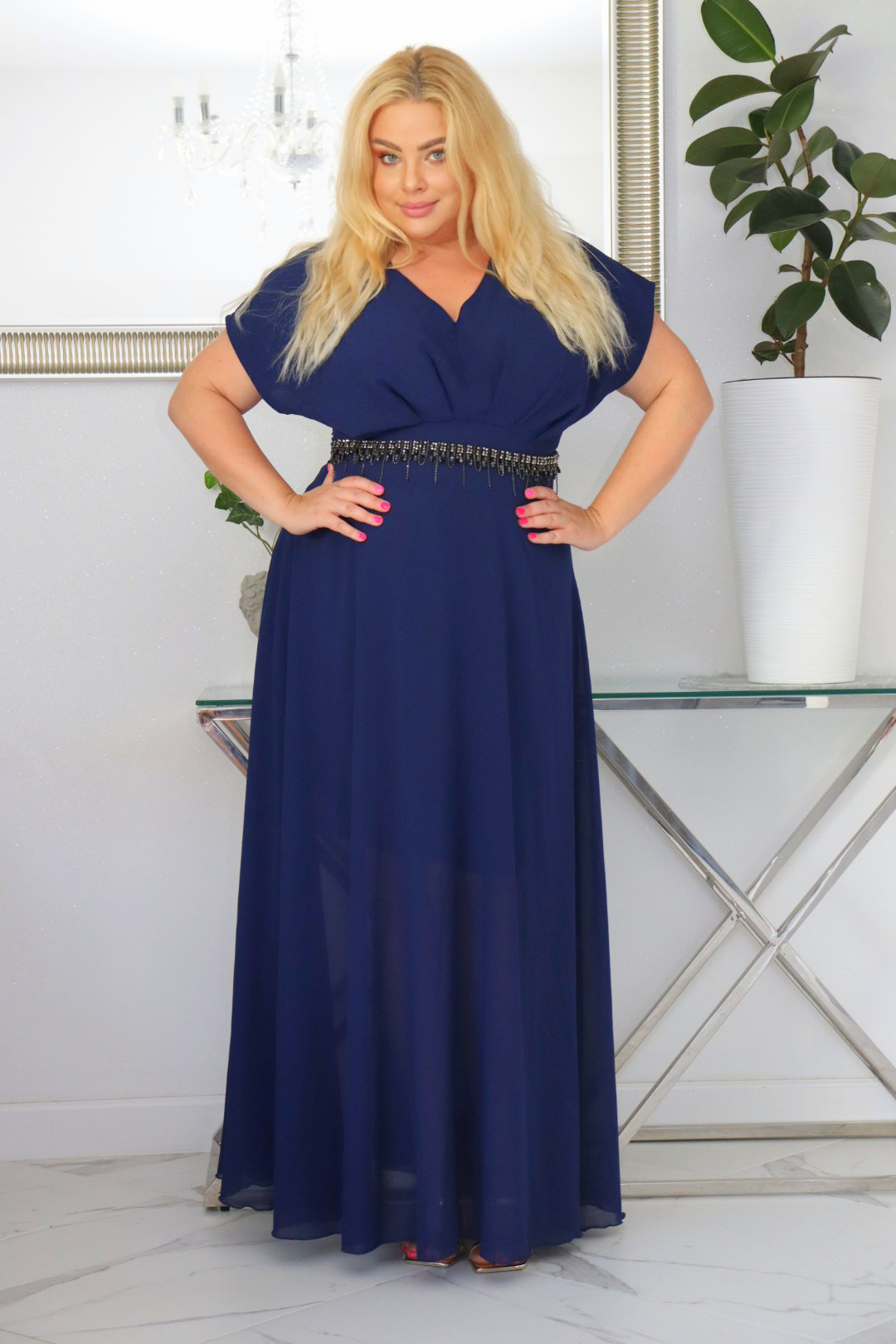 ⭐⭐⭐⭐⭐ 4.9Bestseller110+ sprzedanych!🇵🇱 Polski ProduktAbsolutna IKONA STYLU. Długa MELISA z kryształowym akcentem w talii GRANATOWA!