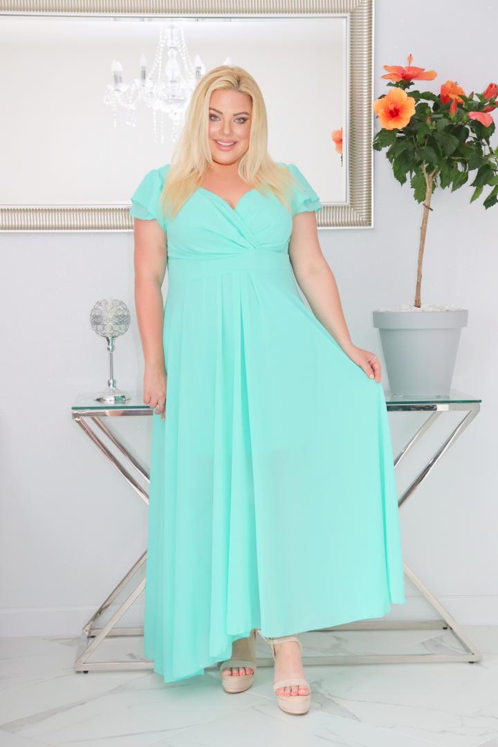 🇵🇱 Polski ProduktSukienka Milos pięknie modelująca sylwetkę! Kopertowy dekolt wysmukla dekolt i szyję. Miętowa.