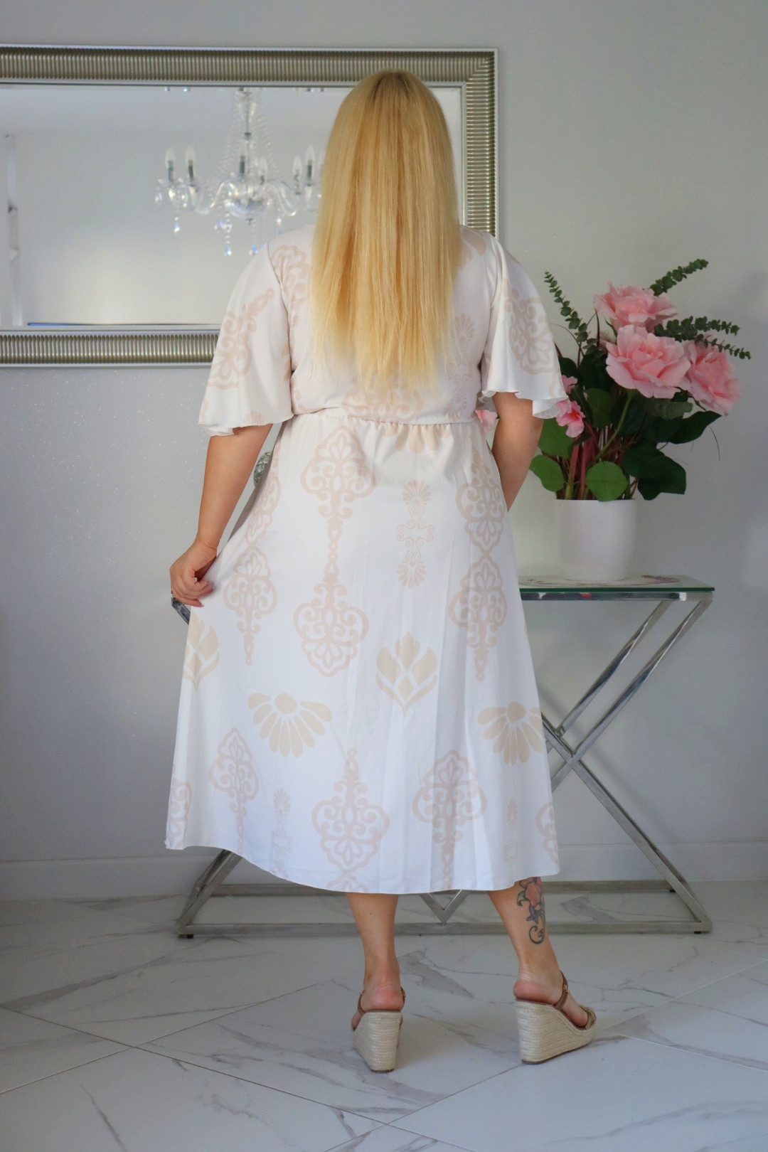Długość sukienki maxi jest zazwyczaj standardowa, ale możesz ją sprawdzić od ramienia (lub linii dekoltu) aby upewnić się, że długość będzie odpowiednia dla Twojego wzrostu.