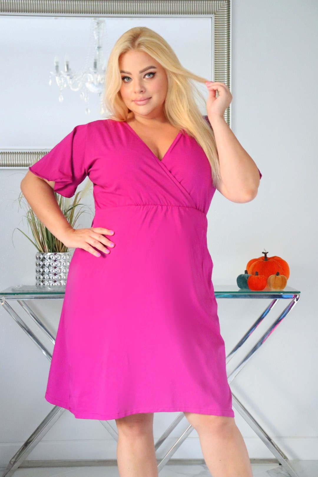 🇵🇱 Polski ProduktSukienka NARINA trapezowa 100% bawełna FUKSJA NATURALNY SKŁAD